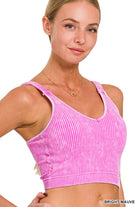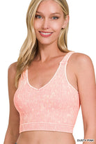 Washed Ribbed Cropped Padded Bra