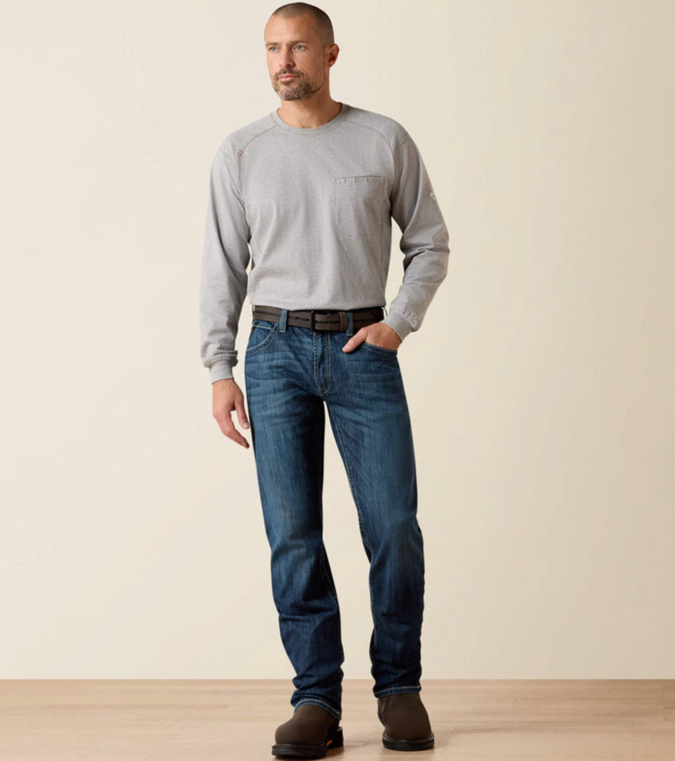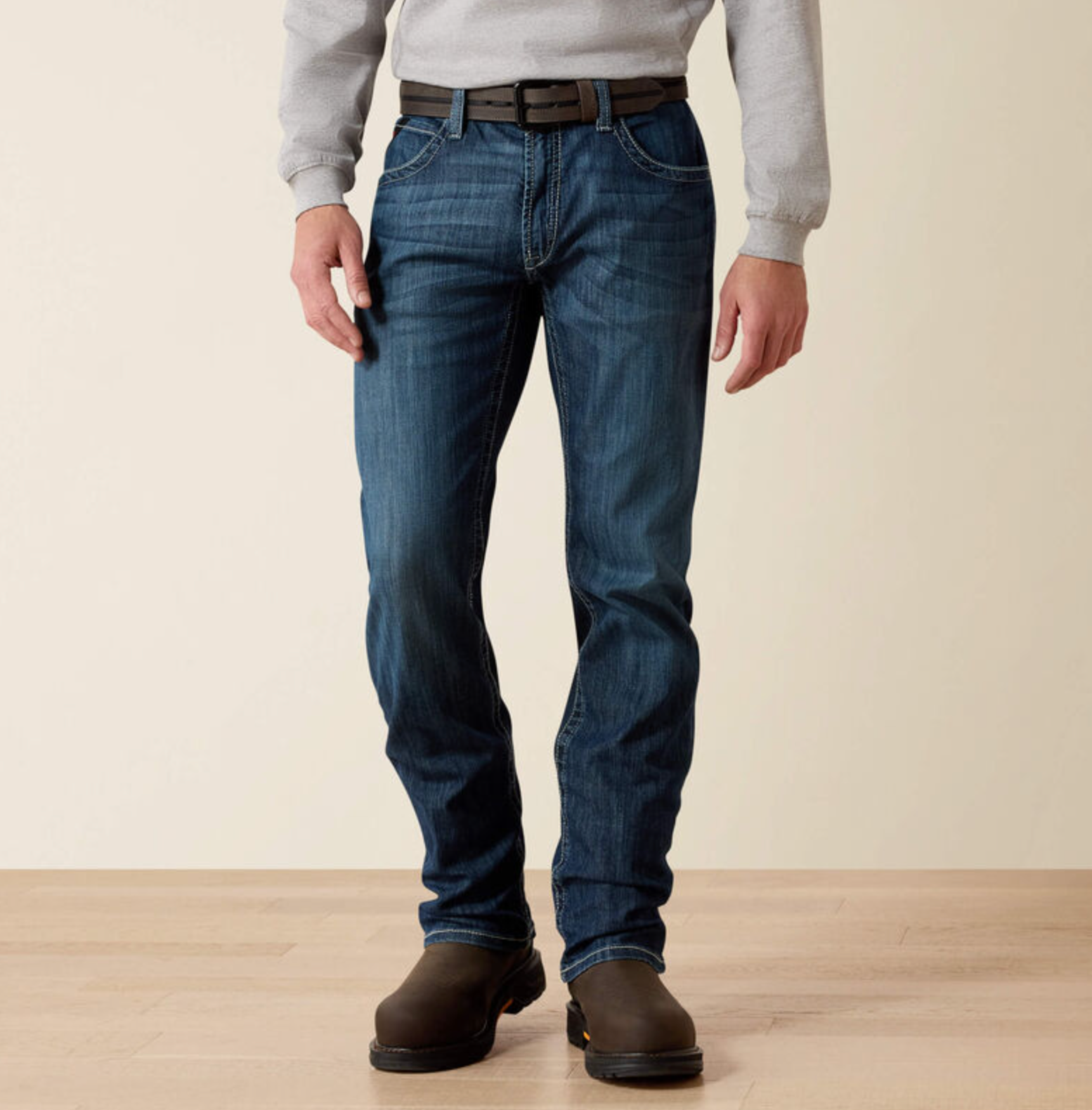 Stay comfortable even when the environment isn't. Lightweight and packed with technology to keep you dry and cool on the hottest jobsites, our flame-resistant DuraLight™ denim holds up to wear and tear while giving you plenty of room to move. This pair is fitted through the hip and thigh with a narrow cut and straight leg.