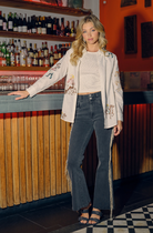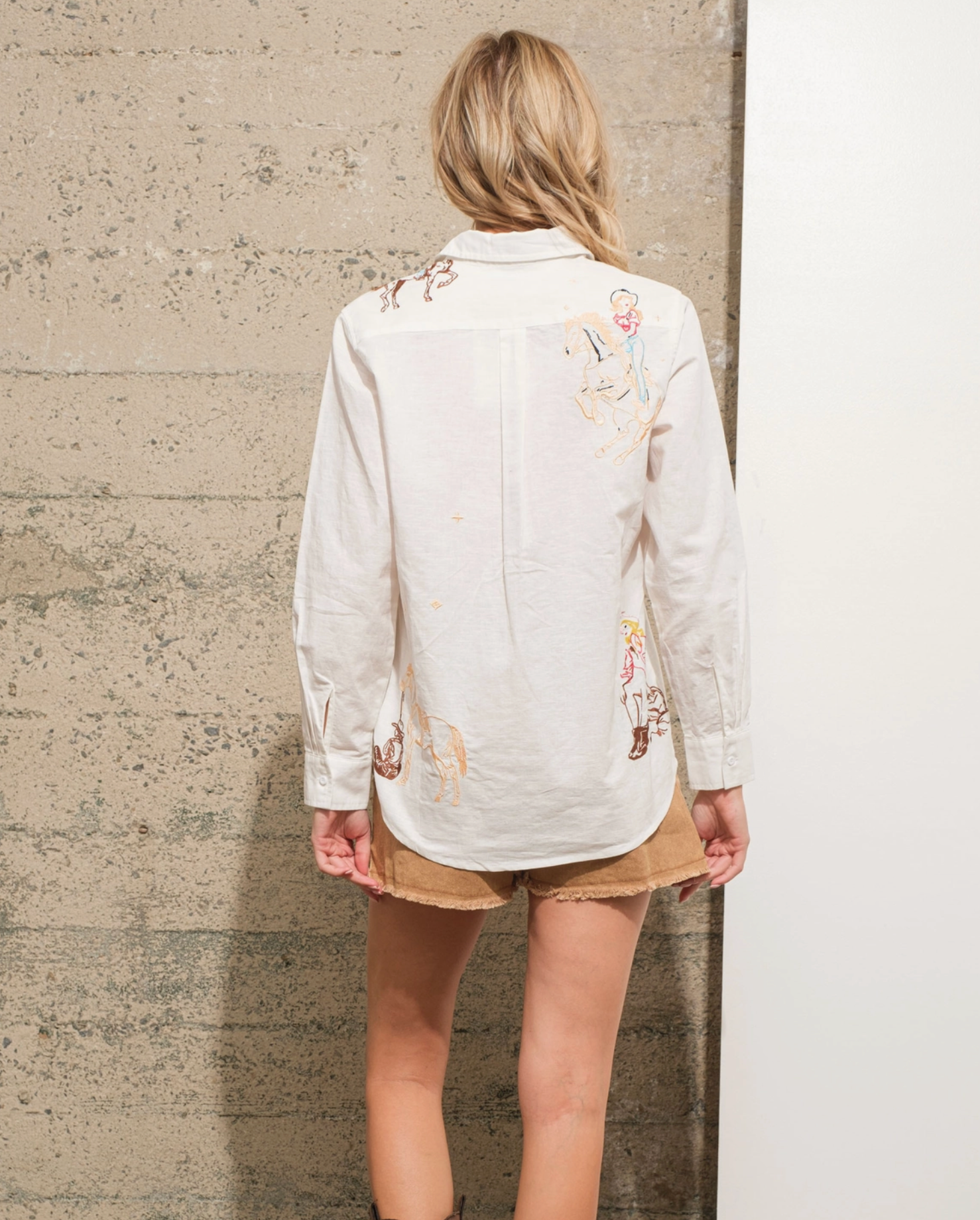 Cowgirl Motif Button Up Linen Shirt Blouse