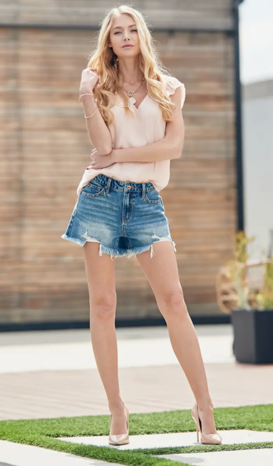 Discover the trendy and fashionable High Rise Girlfriend Denim Short with Destroy. Crafted with quality materials, these shorts feature a high-rise waistline and a relaxed girlfriend fit for maximum comfort. The stylish destroy details add a touch of edginess to your outfit. Perfect for casual outings or summer adventures, these denim shorts are a must-have for any fashion-forward individual. Shop now and elevate your wardrobe with this versatile and on-trend piece. These shorts are designed to elevate your fashion game while providing the utmost comfort.Crafted with meticulous attention to detail, these shorts feature a high-rise waistline that flatters your figure and accentuates your curves. The relaxed girlfriend fit offers a laid-back and effortlessly cool vibe. Dress them up with a pair of heels and a flowy blouse for a chic and casual date night outfit.