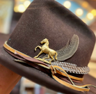 Brass patina running horse hat pin Measures 1 3/4 x 1 3/4” Butterfly Pin back for easy placement Western, rodeo, hat pin, hat bar hat bar, hat pin, horse, rodeo, western