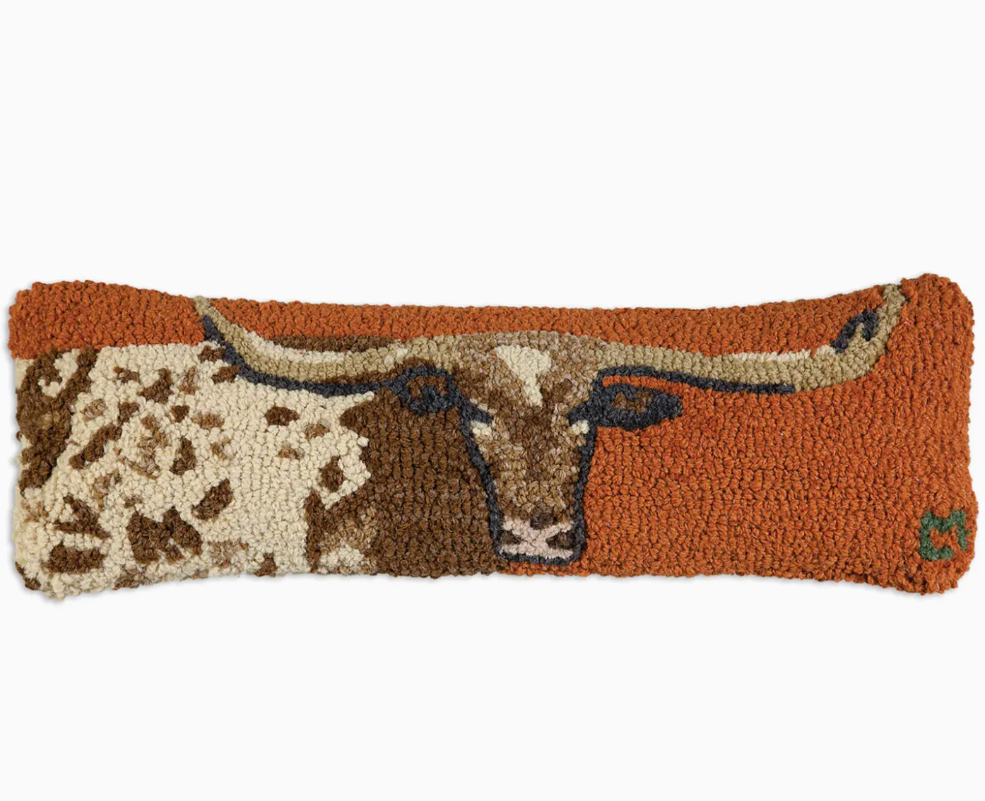 8" x 24" hand hooked pillow, made with 100% natural wool. Zippered velveteen backing with poly-fill pillow insert. Designed in Vermont by Laura Megroz. Handcrafted. Member of the Fair Labor Association.Care Instructions-- Do not machine wash or dry clean. - All of our hand-hooked wool products can be gently spot cleaned with a clean soft sponge or cloth using a solution of mild soap and warm water. Wipe up spills as soon as they occur. Blot (don’t rub) with damp sponge or cloth. Rinse and blot excess moisture with a clean, soft towel. Air dry. Do not pull stray loops or threads. - It is normal for a stray loop or end to pop up from time to time. Simply snip off with a scissor.