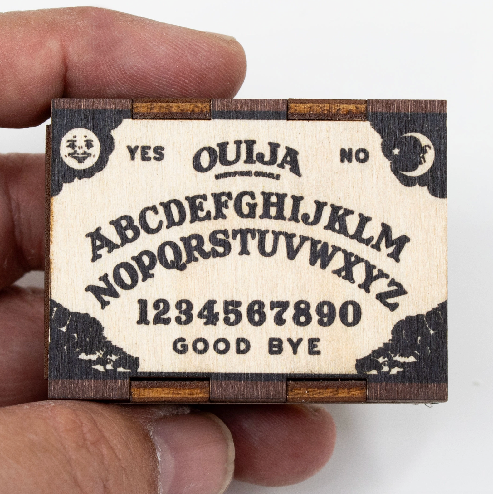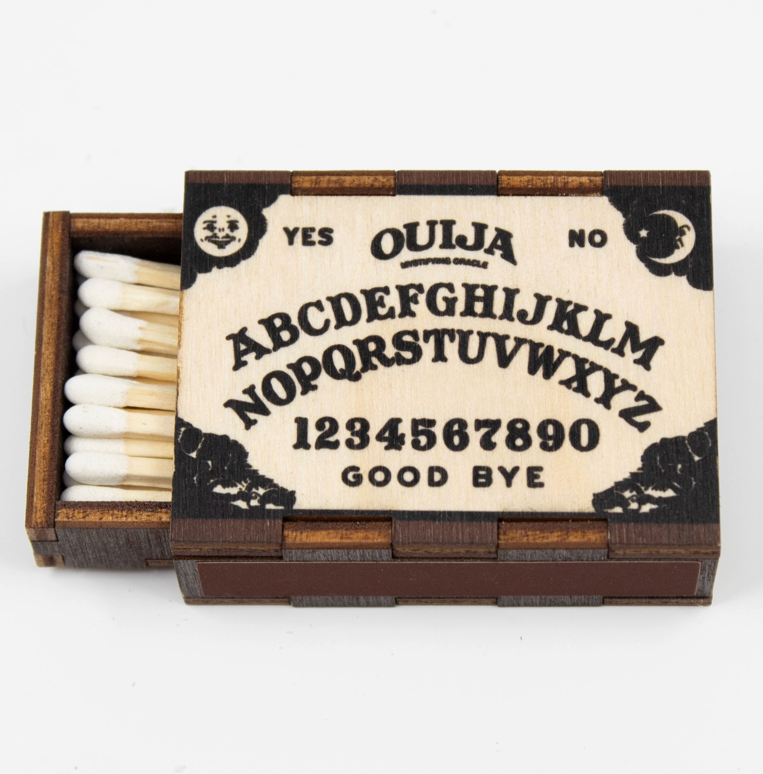 • Great holiday stocking stuffer! • Light your candles and incense with style and purpose. • This unique, hand-crafted box of matches features a Ouija Board on 2 sides with 2 striker pads • Each box contains 15-18 matches and measures about 2.3”x1.75”x.75”