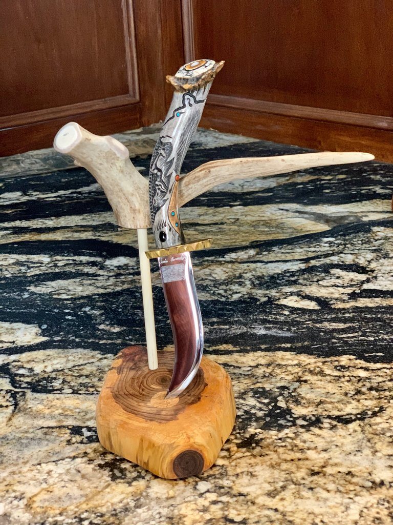 Jesus Armendariz in a one-of-a-kind nature of the highest quality materials available. This tool was designed for the user and collector. It is signed and numbered be the artist and registered to the buyer. Each series does not follow a theme but is a selection of ideas that have particular significance to the artist. Many of the ideas convey the heritage and traditions of the Native American people.