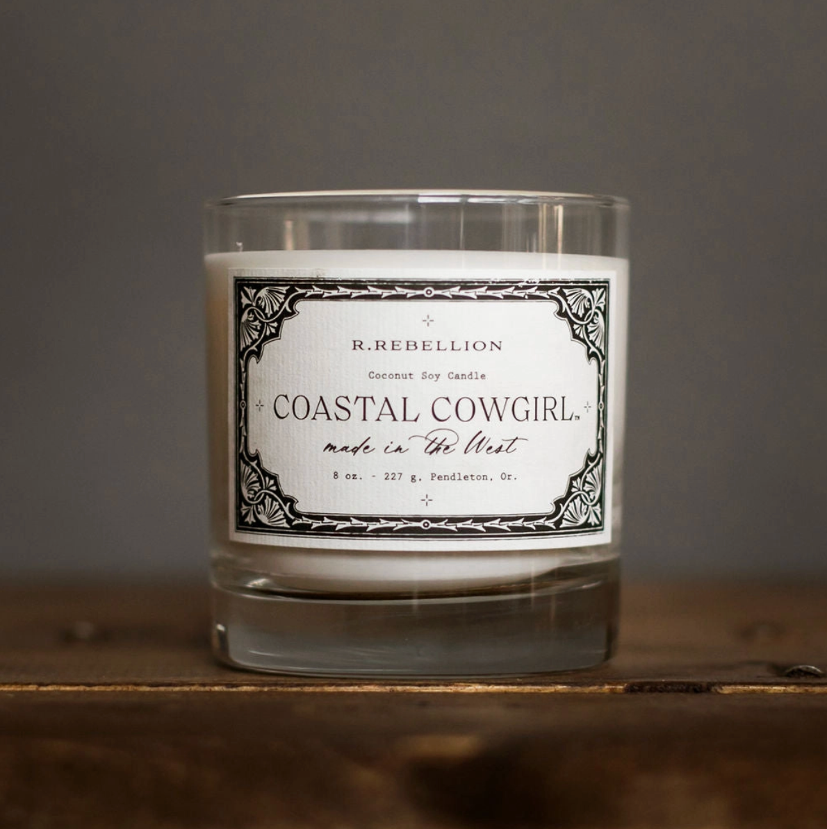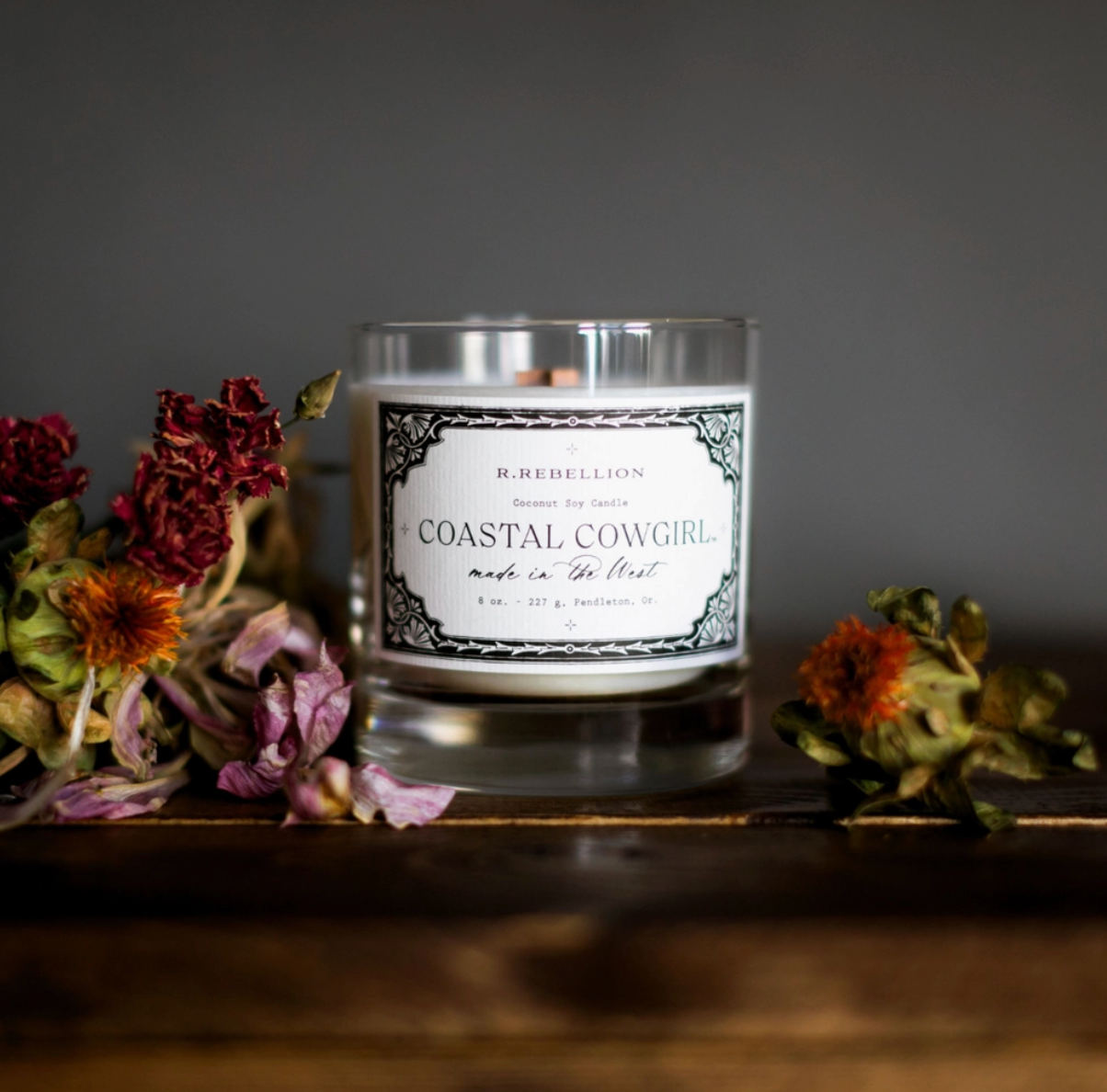 Notes of: coastal, mock orange, jasmine, ancient forest, musk, driftwood, cedar Weight: 8 oz / 227 g Diameter: 3.125 in Height: 3.5 in Wick: Signature Cross Wood Wick Burn time: Up to 60 hours Vessel: Reusable Etched Whiskey Glass Light up your space with the untamed allure of the West Coast with the Coastal Cowgirl Candle. Inspired by rugged coastal beauty and the free-spirited cowboy lifestyle, this candle blends oceanic salt, sweet mock orange blossoms, and jasmine. Musk notes evoke campfire tales beneath starlit skies, while driftwood and cedar transport you to rustic forest cabins. The Coastal Cowgirl Candle embodies the fearless spirit of the cowgirl, merging strength, independence, and the bond between woman and nature. Perfect for wanderers and lovers of the open range, let this scent fill your home with the essence of sun-kissed shores and endless horizons. Discover the magic of the coastal cowboy aesthetic in every flicker.