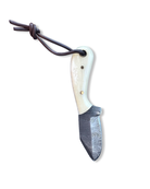 Leather pancake knife sheath by Circle H Leather with a tooled design on the tan front. Solid brown back, belt loop mounts
