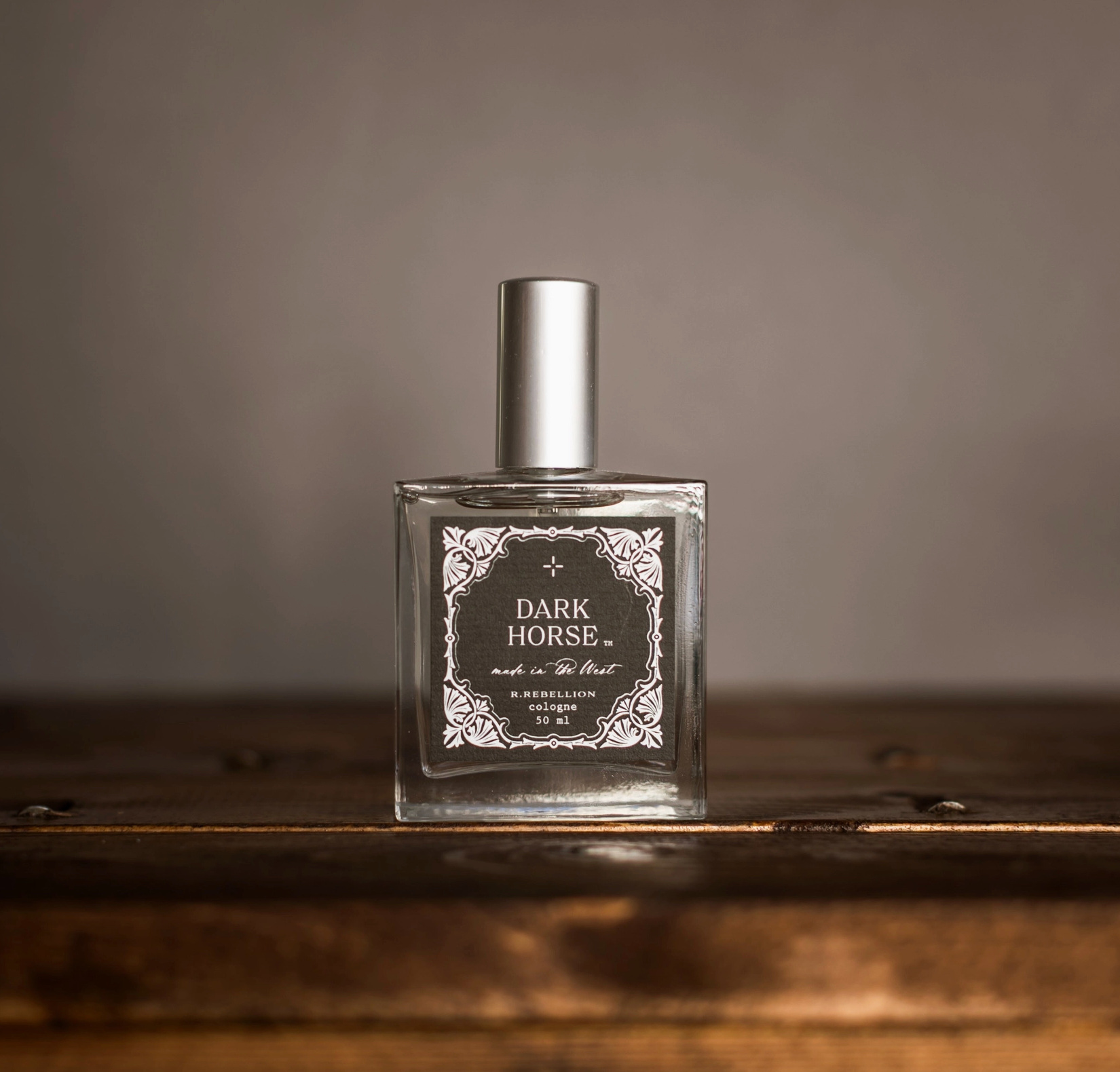 Unleash Your Inner Maverick and Conquer the Wild Frontier of Fragrance Saddle up and embrace the allure of the untamed with Dark Horse Cologne, a bold and enigmatic scent that captures the essence of the rustic cowboy aesthetic. Inspired by the rugged landscapes of the American West and the spirit of adventure that courses through every cowboy's veins, this fragrance is a tribute to those who dare to defy convention and blaze their own trails. Picture yourself riding through vast orchards at dawn, the crisp scent of spring mint mingling with the tangy sweetness of citrus on the breeze. As you journey deeper into the wilderness, notes of tonka bean and cedar evoke memories of cozy nights around the campfire, while hints of rainforest and oakmoss transport you to lush, untouched landscapes teeming with hidden mysteries. Dark Horse Cologne is more than just a scent; it's a journey into the heart of the unknown, where nostalgia meets romance and every breath is an adventure waiting to unfold. Whether you're a lone ranger seeking solitude or a thrill-seeker in search of excitement, let this fragrance be your companion on the road less traveled. Indulge in the romance of the open range with Dark Horse Cologne, and discover the rugged charm of the cowboy lifestyle captured in every drop. Channel your inner maverick and embrace the thrill of the unknown with this captivating fragrance that promises to leave a trail of intrigue wherever you roam. Notes of: spring mint, citrus, orchard, tonka bean, cedar, rainforest, oakmoss, musk 50 ml Mixed by Hand Fine Fragrance Paraben + Phthalate Free