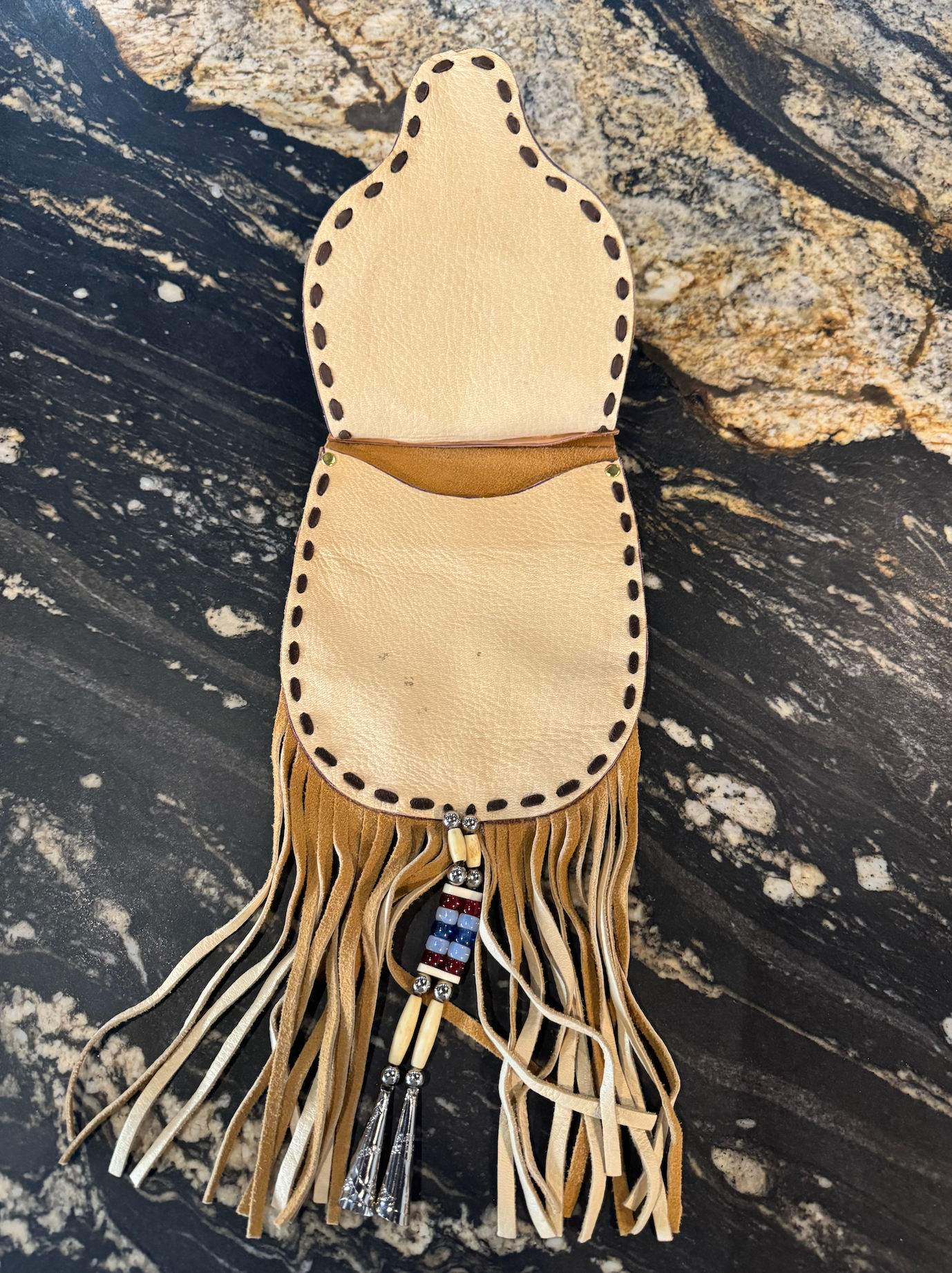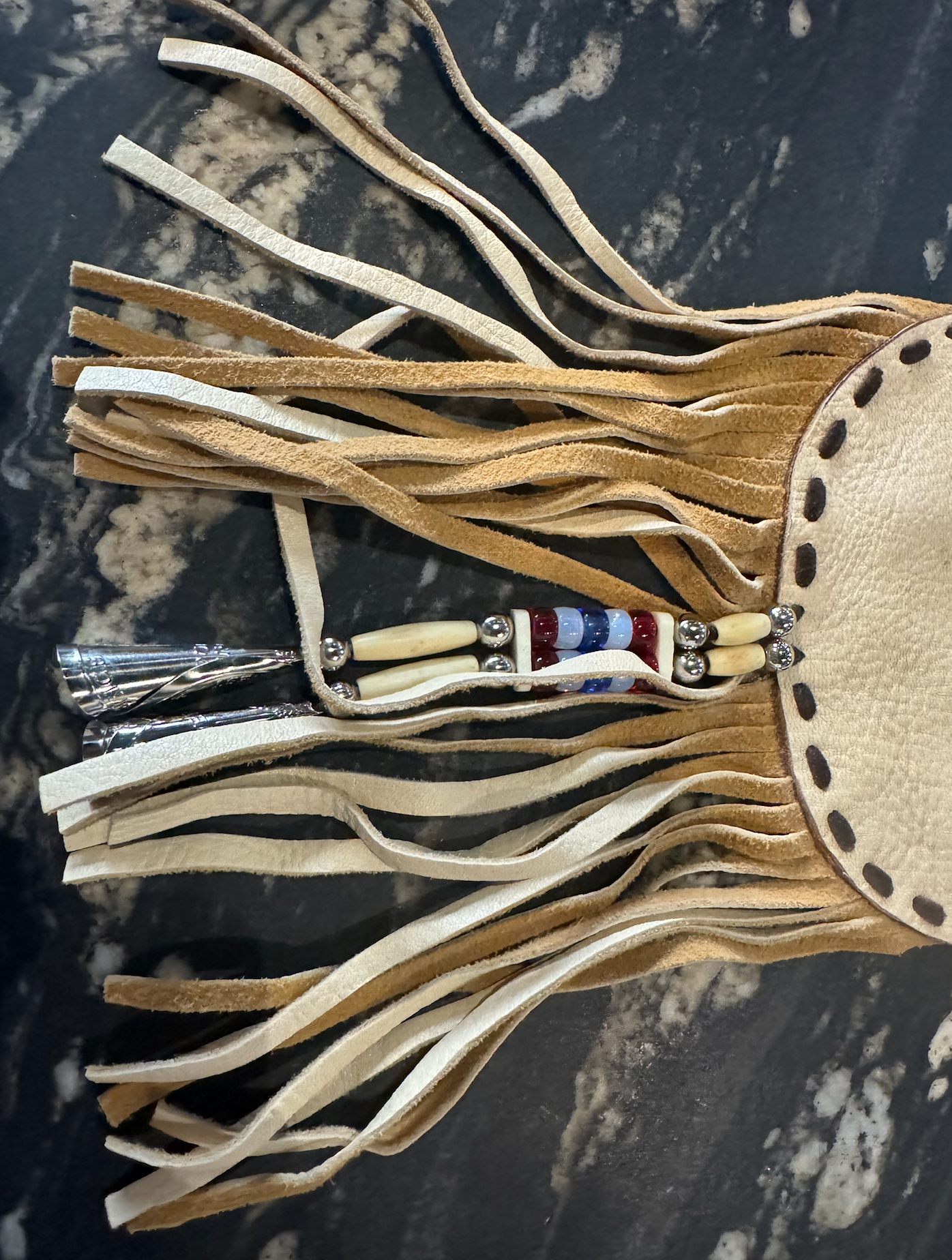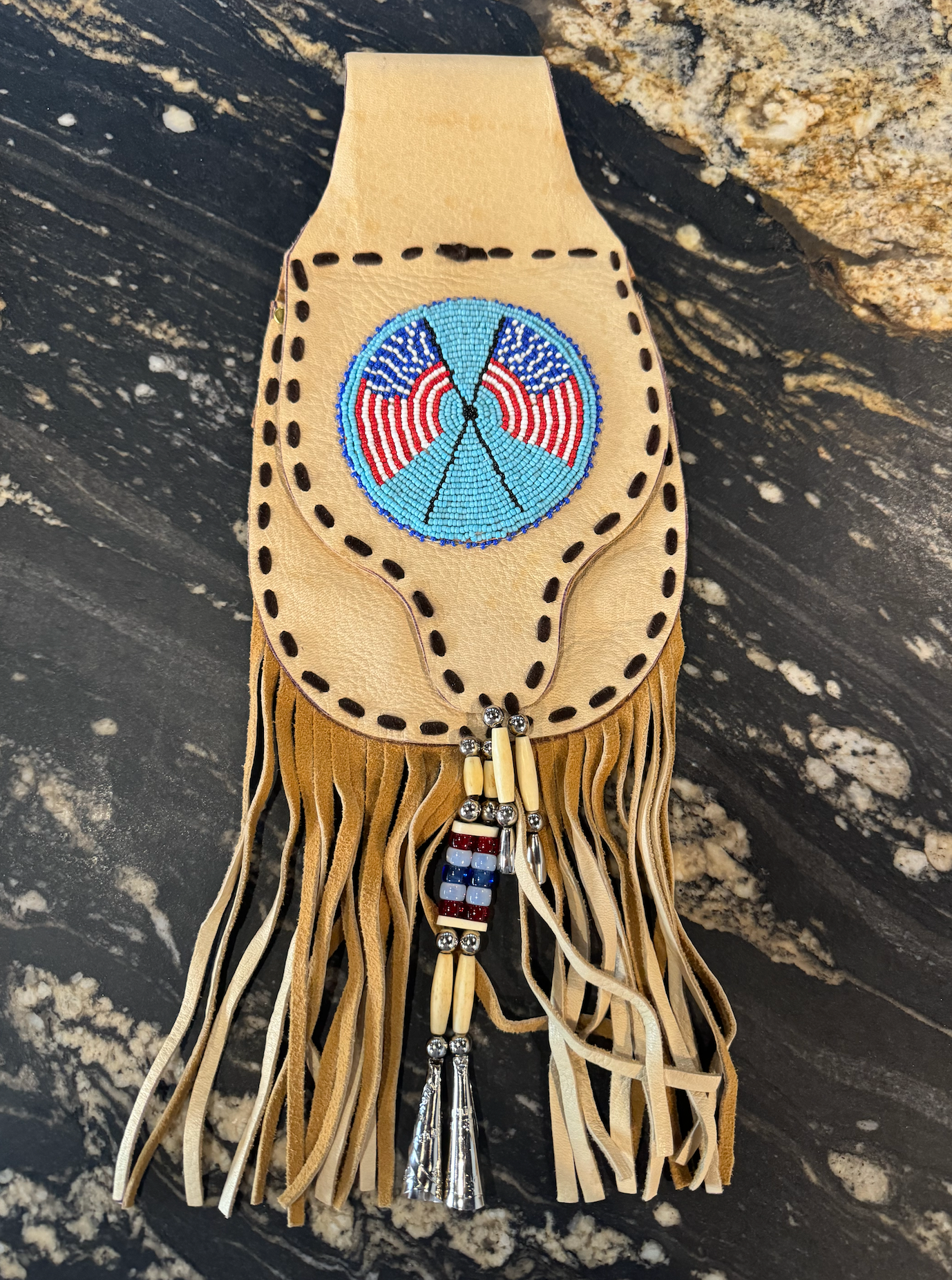 Handmade Native American Medicine Bag decorated with American Flag Coin Seed beads with Fringe