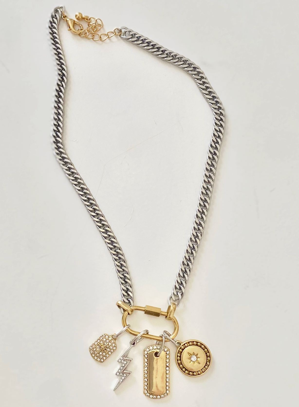 Carabiner Charm Amulet Necklace- Steel Waterproof- 5 Charms