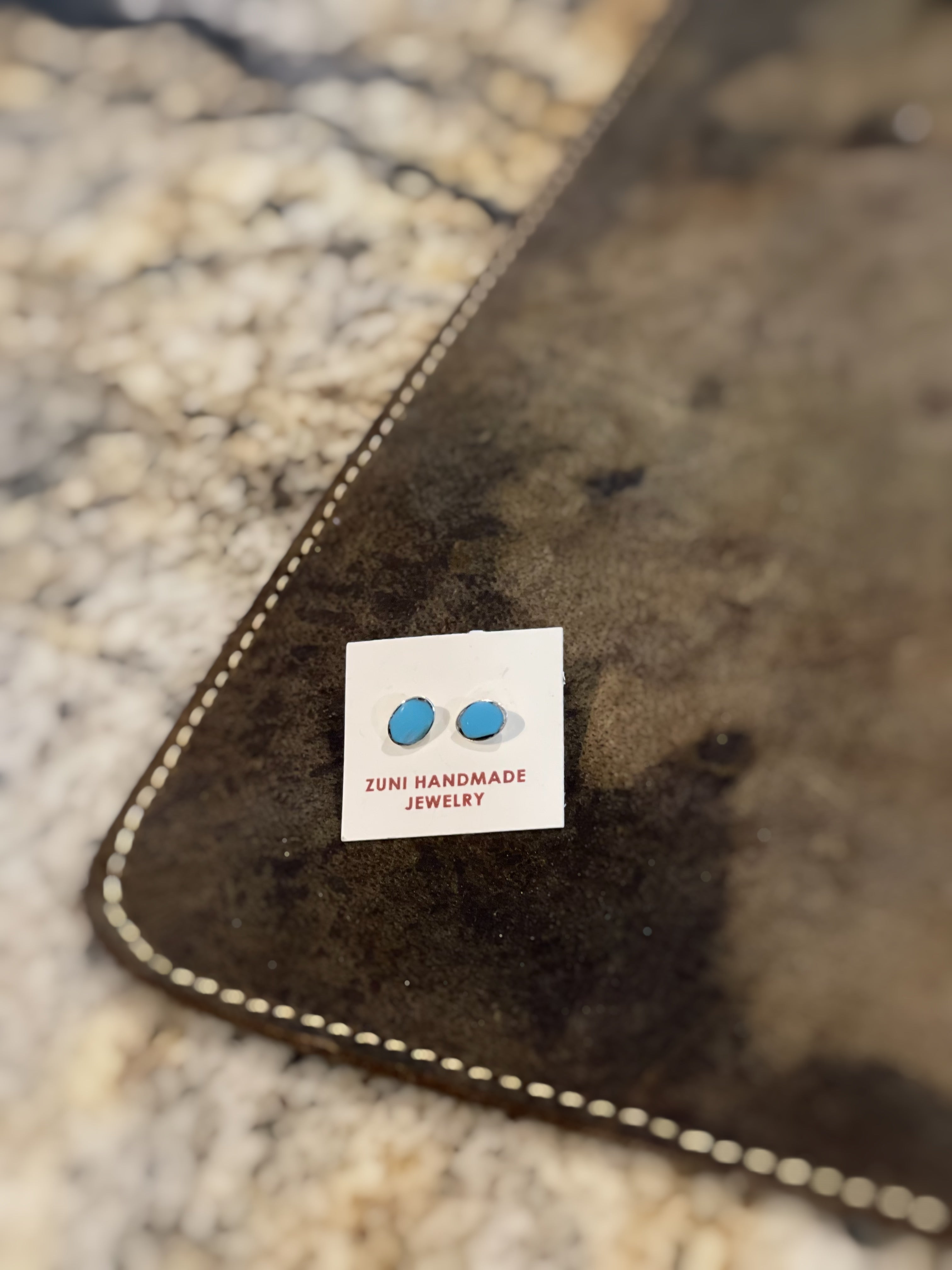 ESTER WHITE STERLING SILVER ZUNI TURQUOISE OVAL EARRINGS