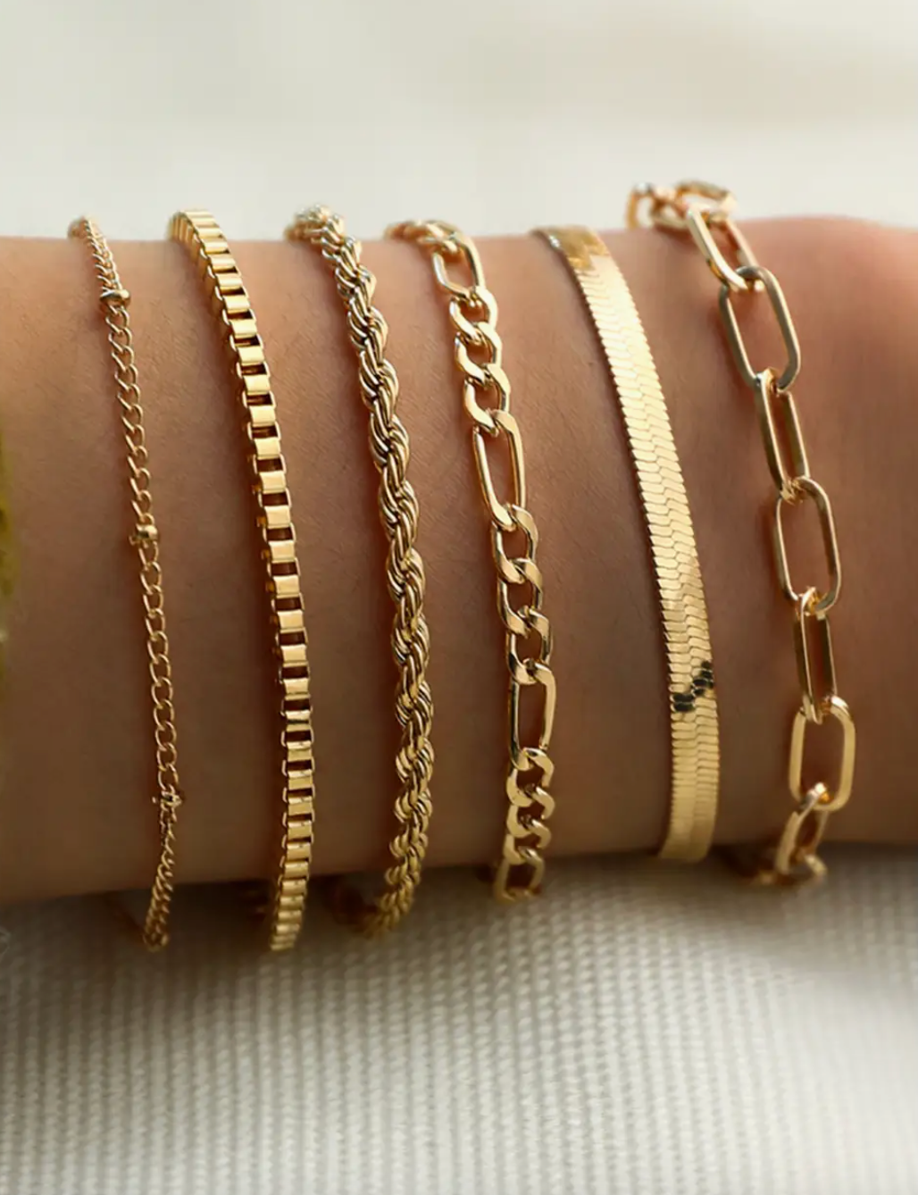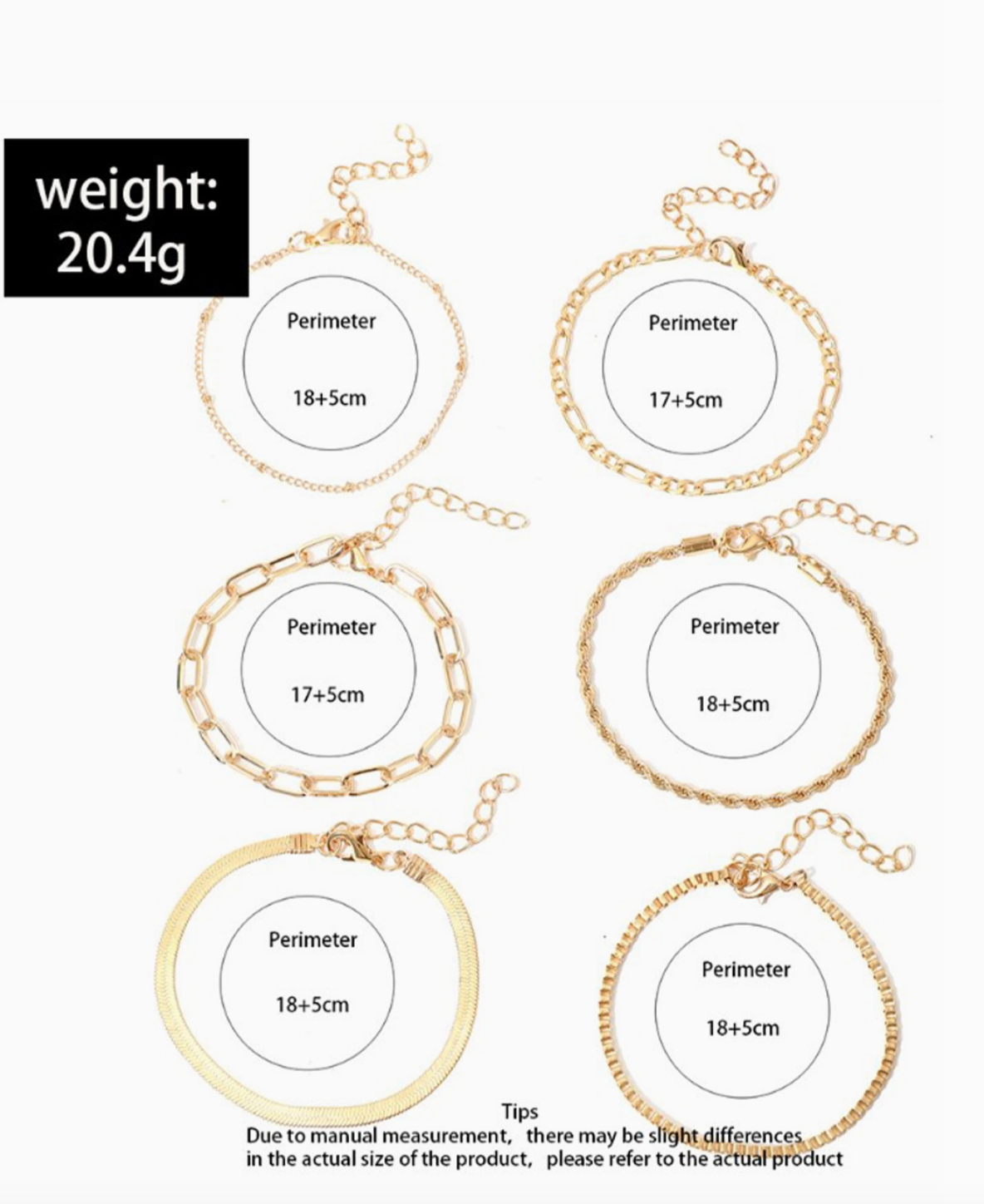 Material 100%Alloy Size ONE SIZE Style Casual Occasion Daily 💫 Multi-layered bracelet set creates a stacked appearance. 🔗 Adjustable chain links ensure a perfect wrist fit. 🔩 Iron material for strength and modern industrial style.