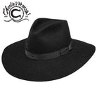 The Black Highway western hat is the perfect touch of cowgirl in a simple style. A bow tie ribbon hatband adorns the pinch front crease crown. The iconic "C" is hand-branded on the front of the crown. Pair this cowgirl hat with a nice dress for a night out, or with your old blue jeans. You can't go wrong with this Charlie 1 Horse hat.