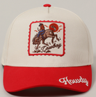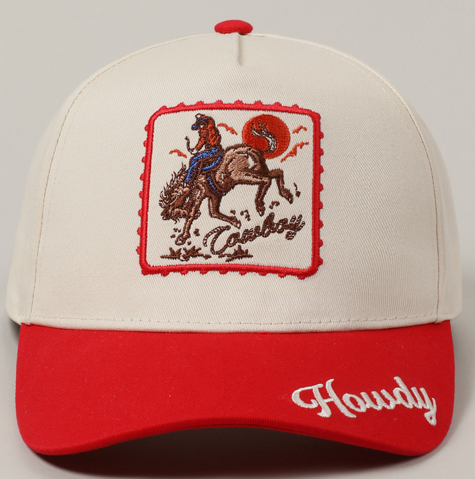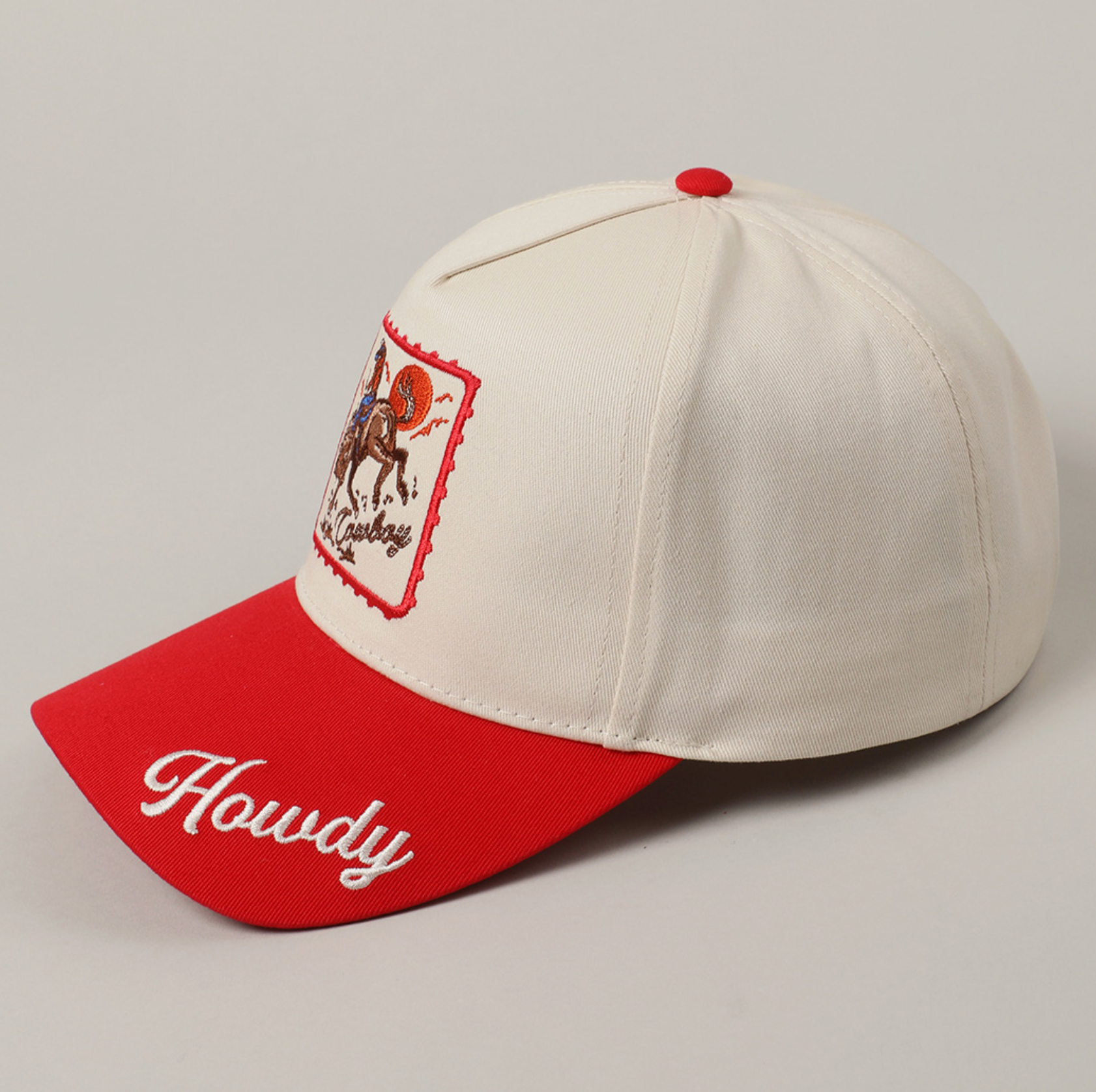 Detailed Cowboy Horse Embroidery Two-Tone Cap - Detailed Cowboy and horse Image Embroidery - 5 Panel Trucker Baseball Cap - Stylish Two-Tone Baseball Cap - 100% Cotton -One size fits most: adjustable snapback closure The Cowboy Image Howdy Text Embroidery Foam Hat is a bold and stylish accessory for any cowboy or western enthusiast. Featuring an eye-catching embroidered "Howdy" text along with a detailed cowboy image, this hat captures the spirit of the wild west. Made from durable foam, it provides a lightweight yet structured fit, offering comfort and breathability throughout the day. The wide brim offers sun protection, making it ideal for outdoor activities. Perfect for rodeos, country festivals, or casual wear, this hat adds a fun, rustic touch to any outfit while showcasing your love for cowboy culture.
