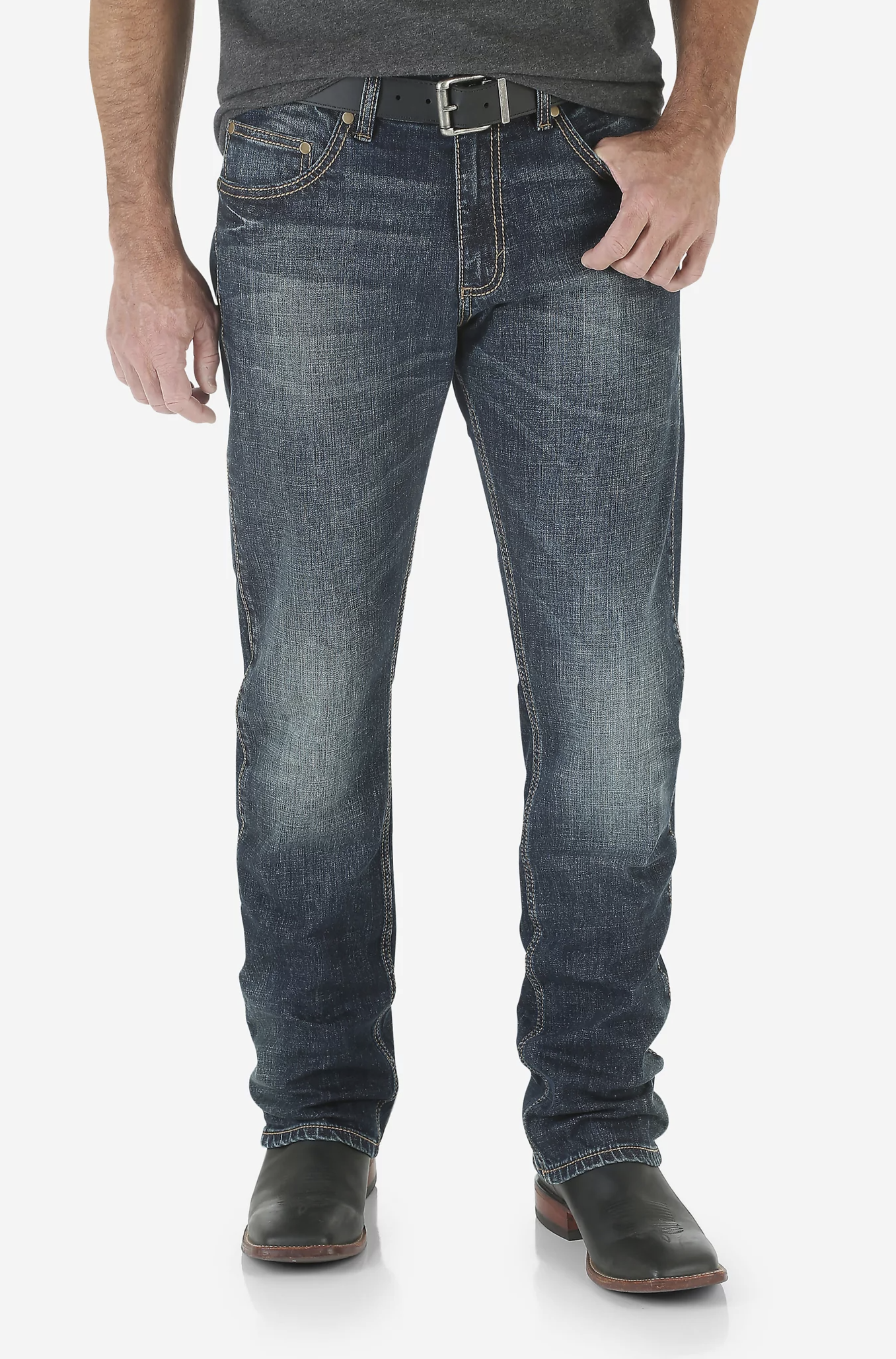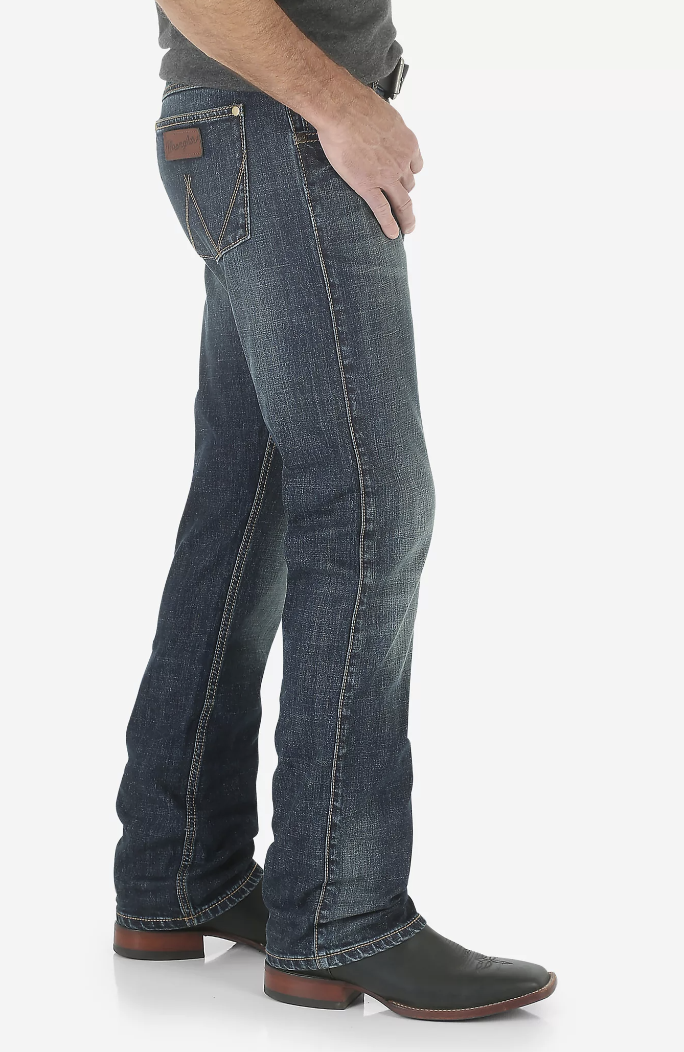 Wrangler® Retro® slim fit jeans nod to our history while introducing fits and washes suited for the modern cowboy. Designed with a closer fit and leg opening that still falls comfortably over boots, our men's Wrangler® straight leg slim fit jeans add extra style to the classic look you love. These jeans sit low on the waist and make it easy to show off your favorite belt buckle. That design detail is our Western heritage showing through, something that happens often with the Wrangler® Retro® collection. If you're going for a coordinated cowboy style with these men's slim fit straight leg jeans, pair them with a Western Wrangler® Retro® button-up to complete your look.