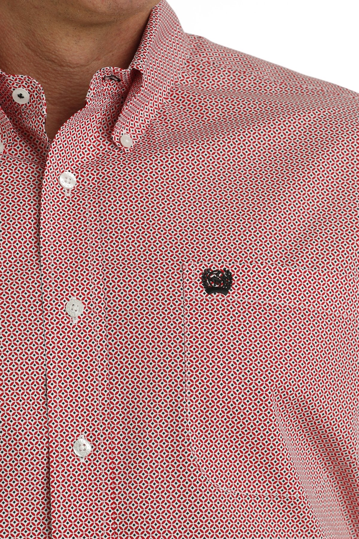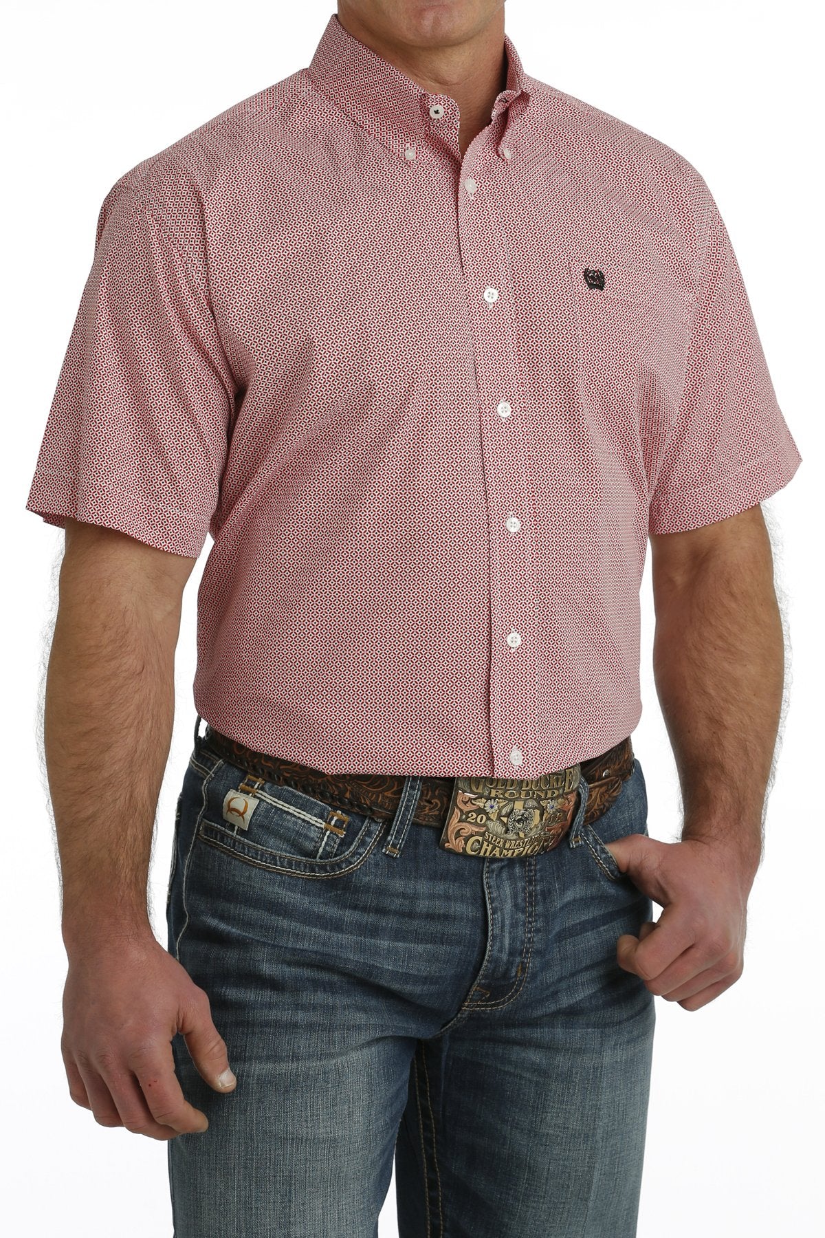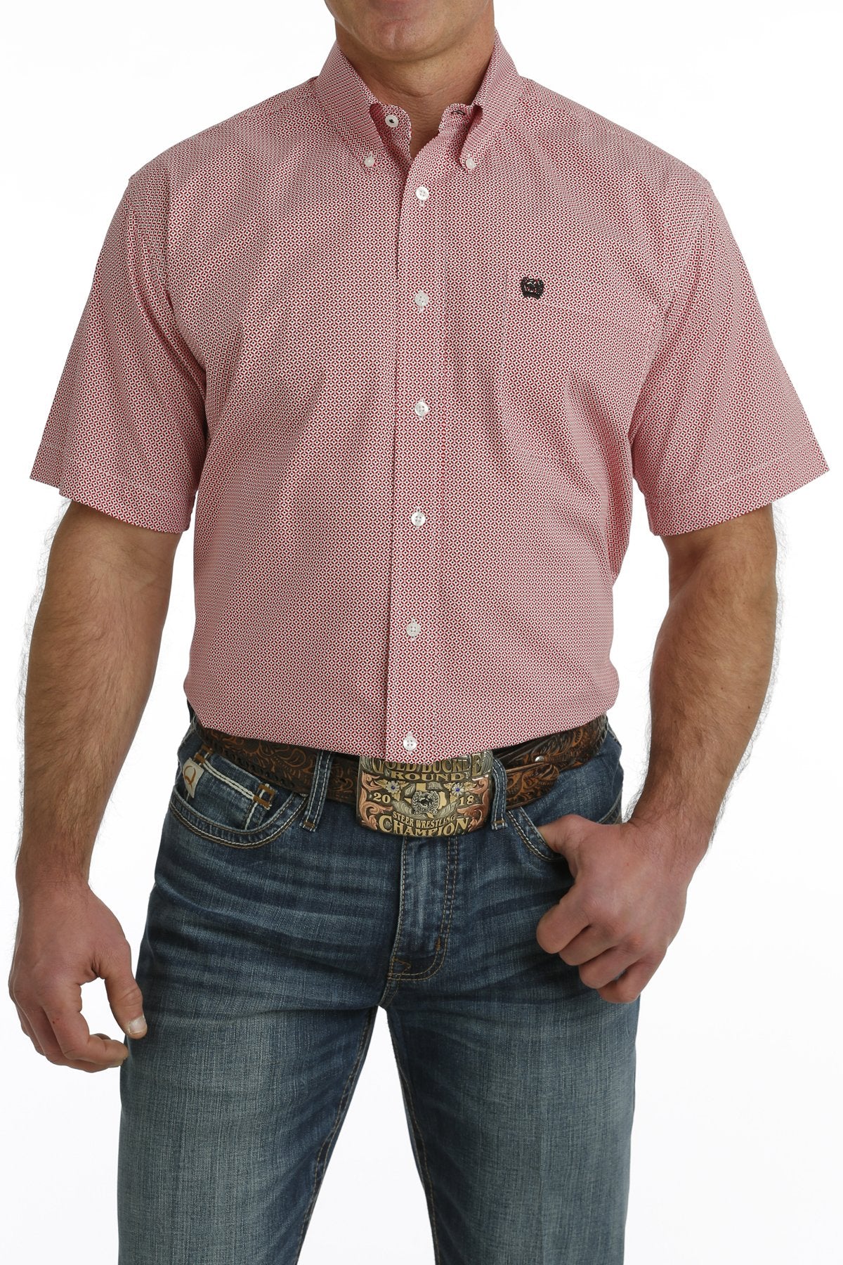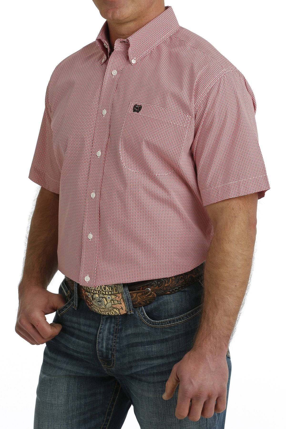 Men's Cinch Geometric Print Short Sleeve Button-Down Western Shirt - Red/White MTW1111449