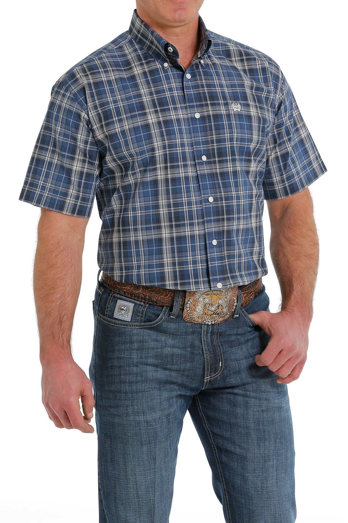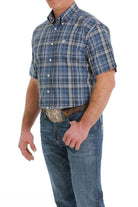 MEN'S CINCH BLUE PLAID SHORT SLEEVE