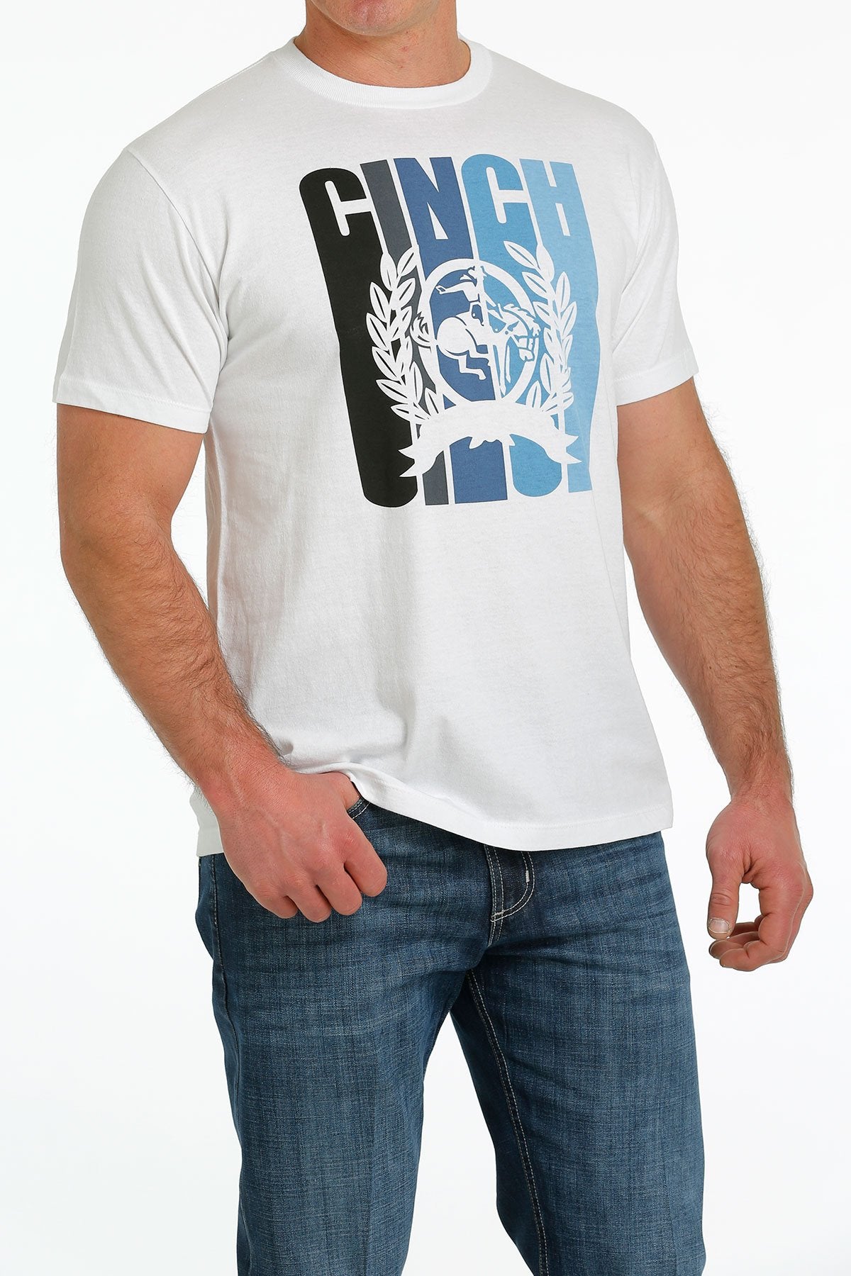 A wardrobe staple designed to wear season after season, this heather white cotton-poly crew neck works solo or layers under your favorite hoodie, jacket or vest. Design details include standard tee styling with CINCH front screen print.