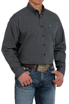 MEN'S CINCH GEOMETRIC PRINT BUTTON DOWN LONG SLEEVE SHIRT - NAVY