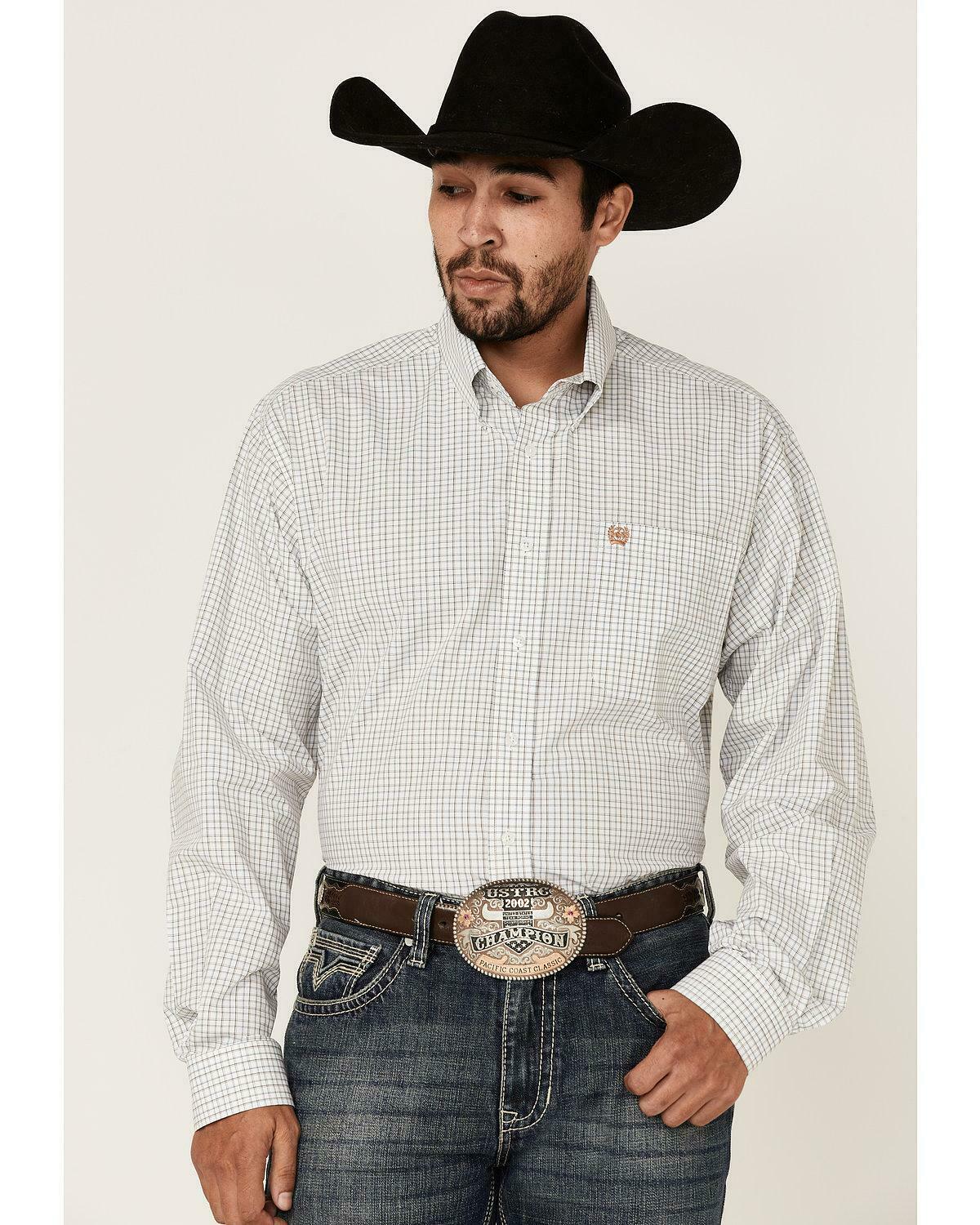 MEN'S CINCH WHITE PLAID LONG SLEEVE BUTTON DOWN SHIRT