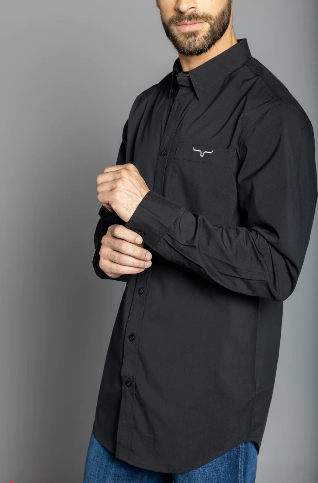 Details: Long Sleeve, Piece Dyed, Solid Cooling Fabric, Single Pocket Featuring Contrasting Embroidered Horns Logo, Button Front, Long Body and Sleeves.