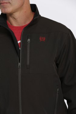 Get a jump on incoming weather wearing this brown poly-spandex bonded jacket with Durable Water Resistant (DWR) finish. Built to provide extra protection from the elements, this ideal outerwear layer features double front zippered hand pockets, a zippered vertical chest pocket and 3D logo embroidery.