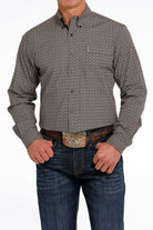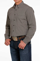 Upgrade your business casual wardrobe selections with a Modern Fit brown printed cotton plain weave like this one crafted by CINCH. The ideal match for khaki pants or blue jeans, this shirt features an open left front pocket with embroidered logo and brown buttons.