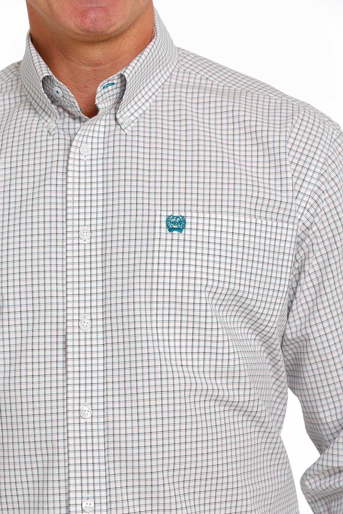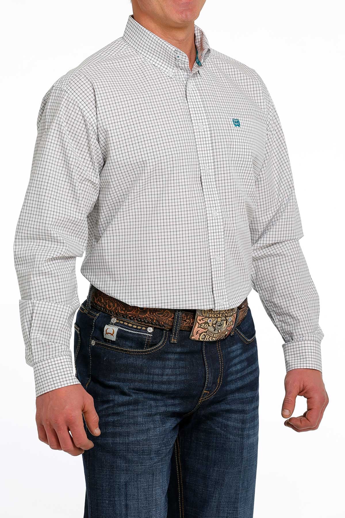 An essential white plaid shirt with classic style, this cotton plain weave is made up in a windowpane print with open left front pocket, embroidered CINCH logo and traditional white buttons. Pair with blue jeans or khakis for a casual day at the office.