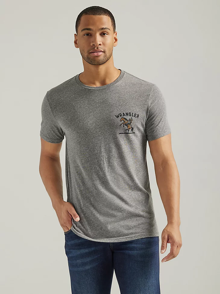 Wrangler Denim Co. Bucking Cowboy Graphic T-Shirt - Heather Grey