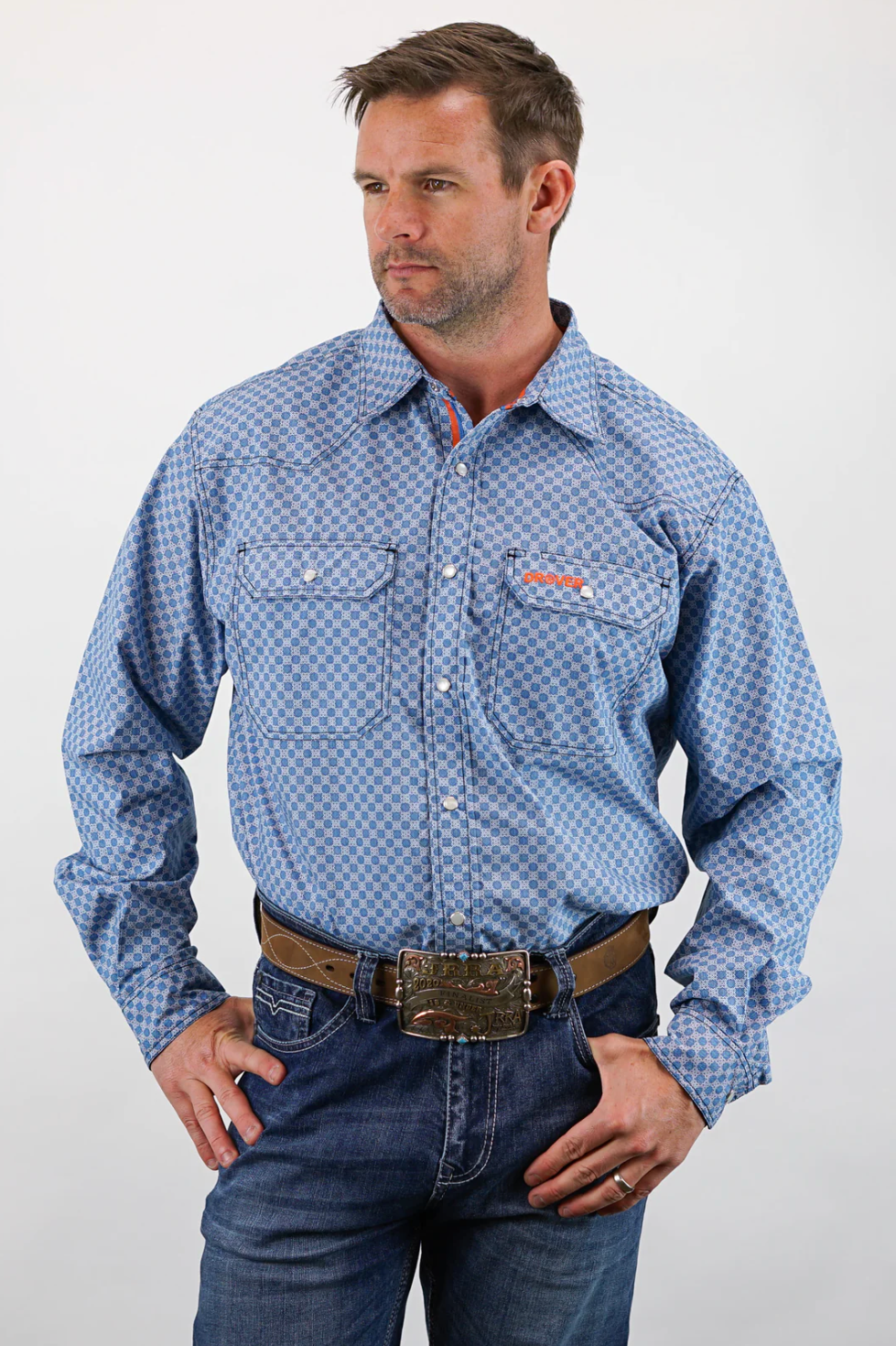 Drover Signature Series - Outlaw - Pearl Snap, Print, Option Cuff, Classic Fit Shirt (Blue Diamond)