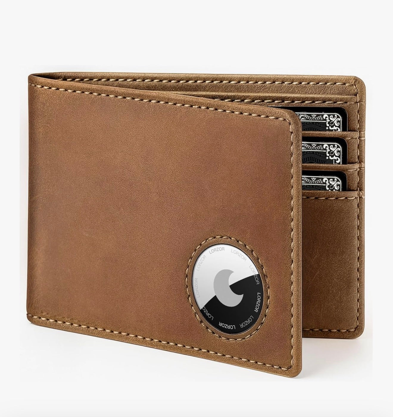 - [Integrated Holder] The LORZOR airtag wallet has an integrated holder designed for your AirTag. Put it into the built-in holder case, then you can keep track of your wallet via Find My APP and you will never lose your wallet again! (Air Tag NOT included)