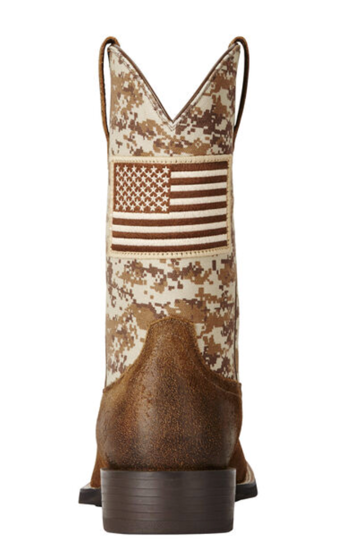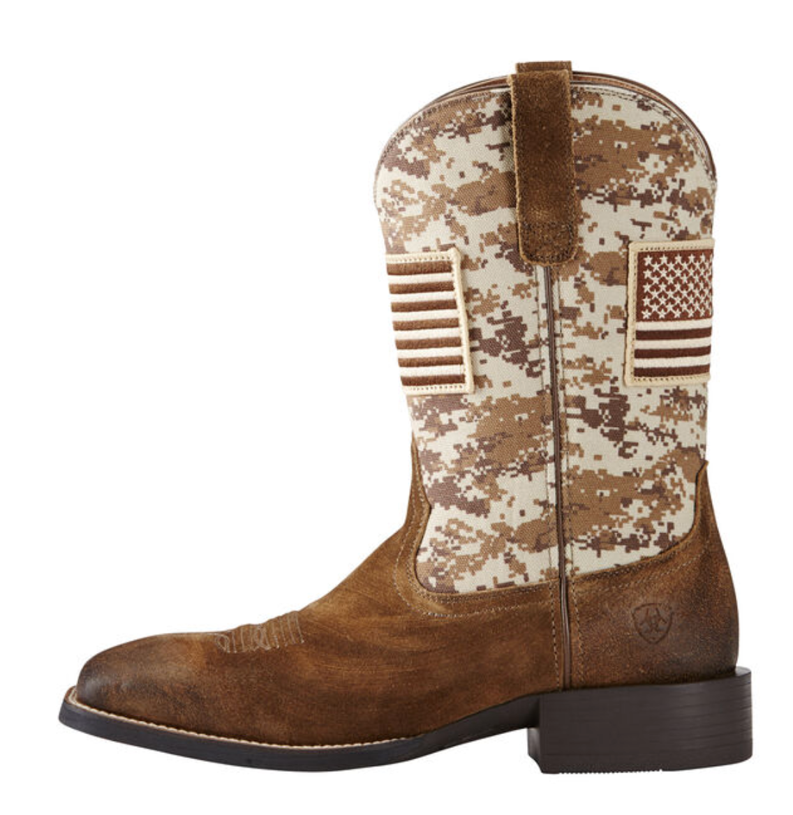 Show pride while you ride. These boots feature an American flag and camo pattern in supple suede and leather, plus innovative comfort technology for all-day wearability.