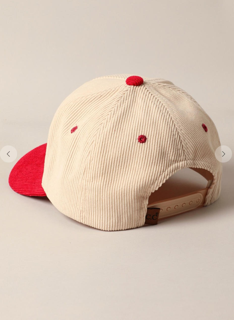 Two-Toned Embroidery Baseball Trucker Hat -Novelty embroidered phrasing at the front -5 Panel corduroy baseball cap -20% Cotton 80% Polyester -Embroidered In USA -Base Cap by CC -One size fits most: adjustable snapback closure