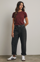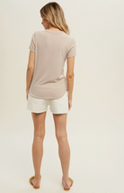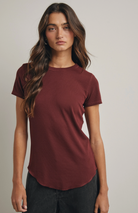 RIBBED KNIT BASIC T-SHIRT - COMFORTABLE, CASUAL, EVERYDAY, DAILY 65% RAYON, 3% POLYESTER, 5% SPANDEX
