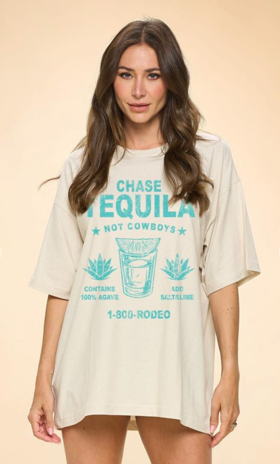 CHASE TEQUILA VINTAGE GRAPHIC, PREMIUM WASHED COTTON OVERSIZED CREW NECK TEE