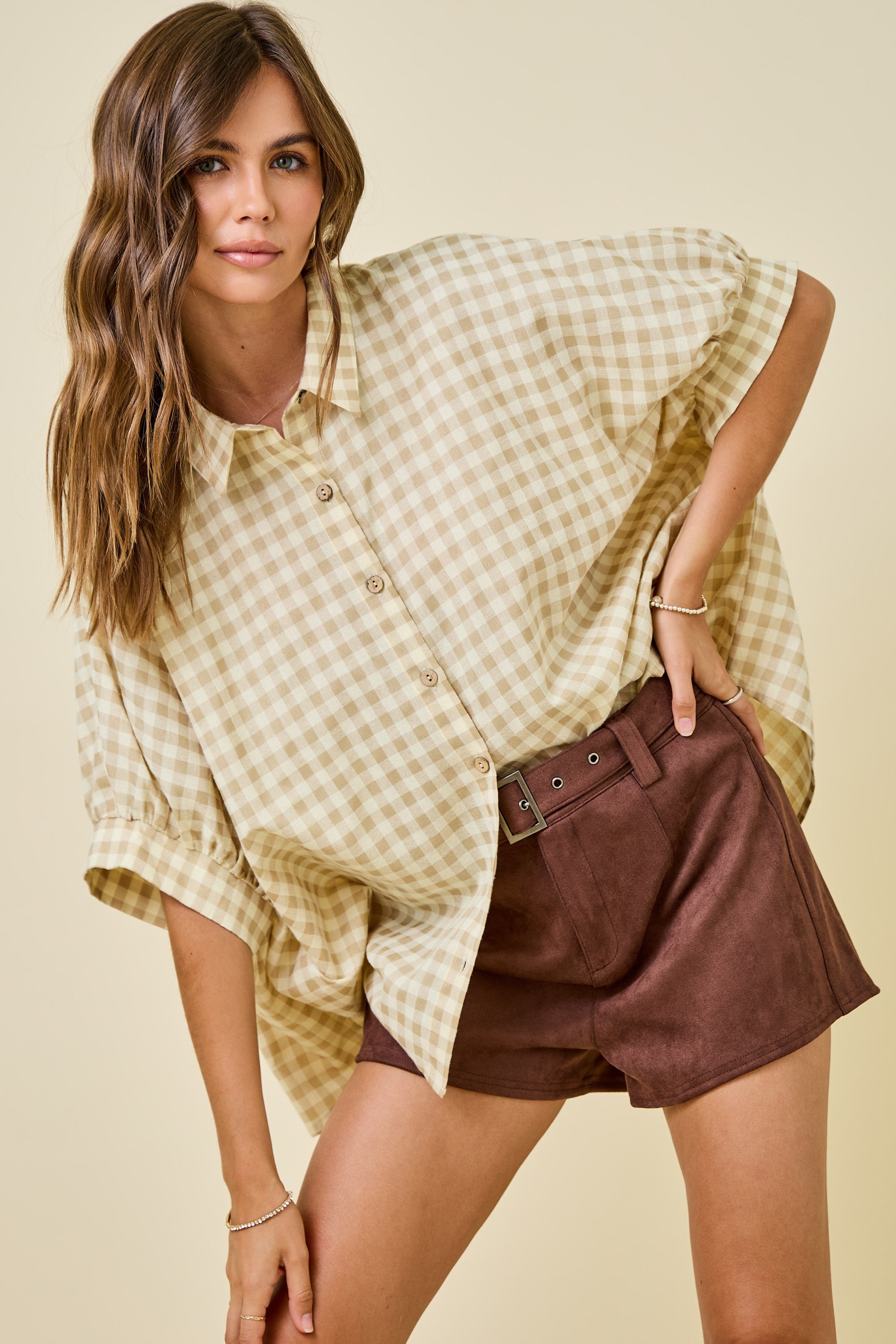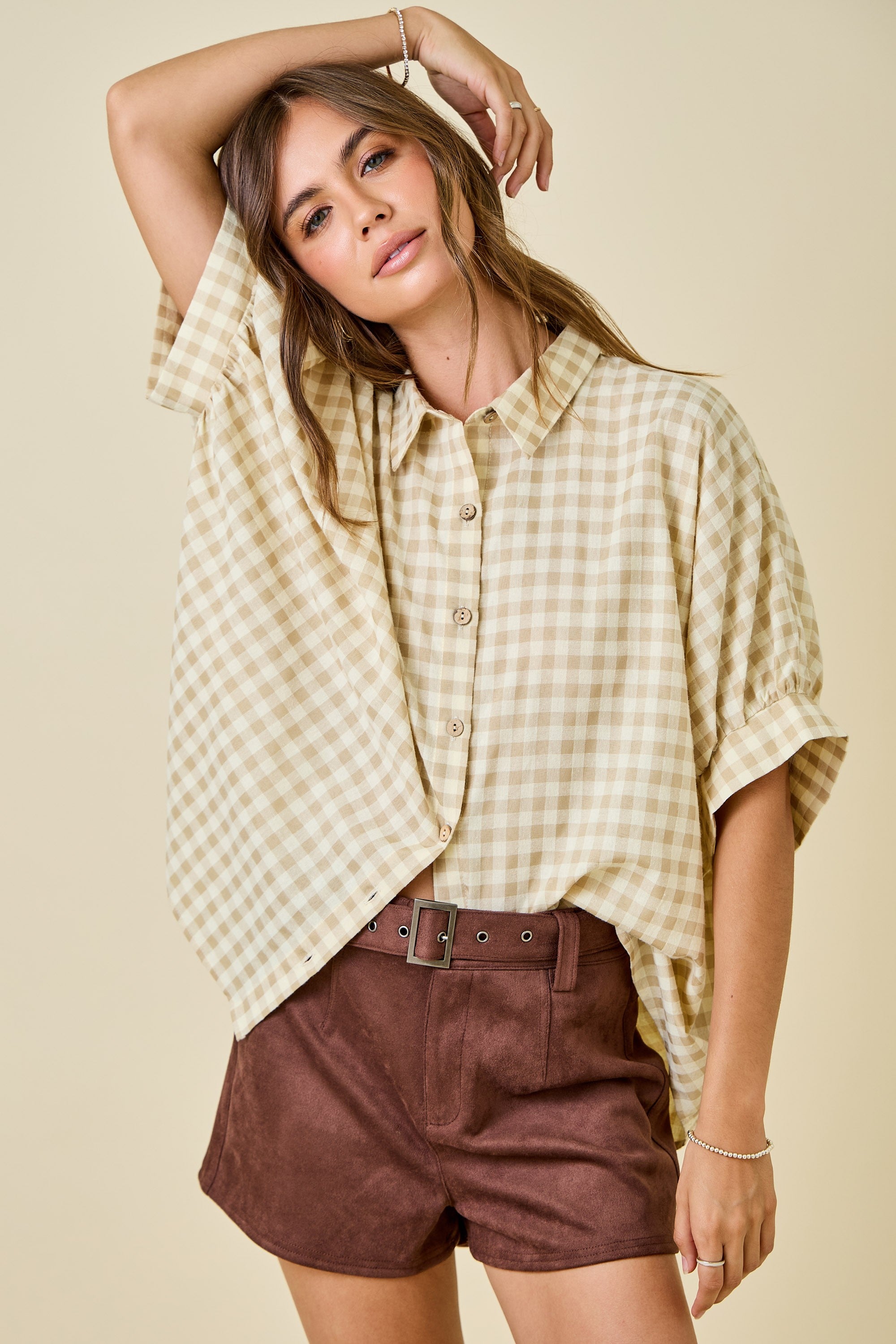 Sand Gingham Oversized Shirt