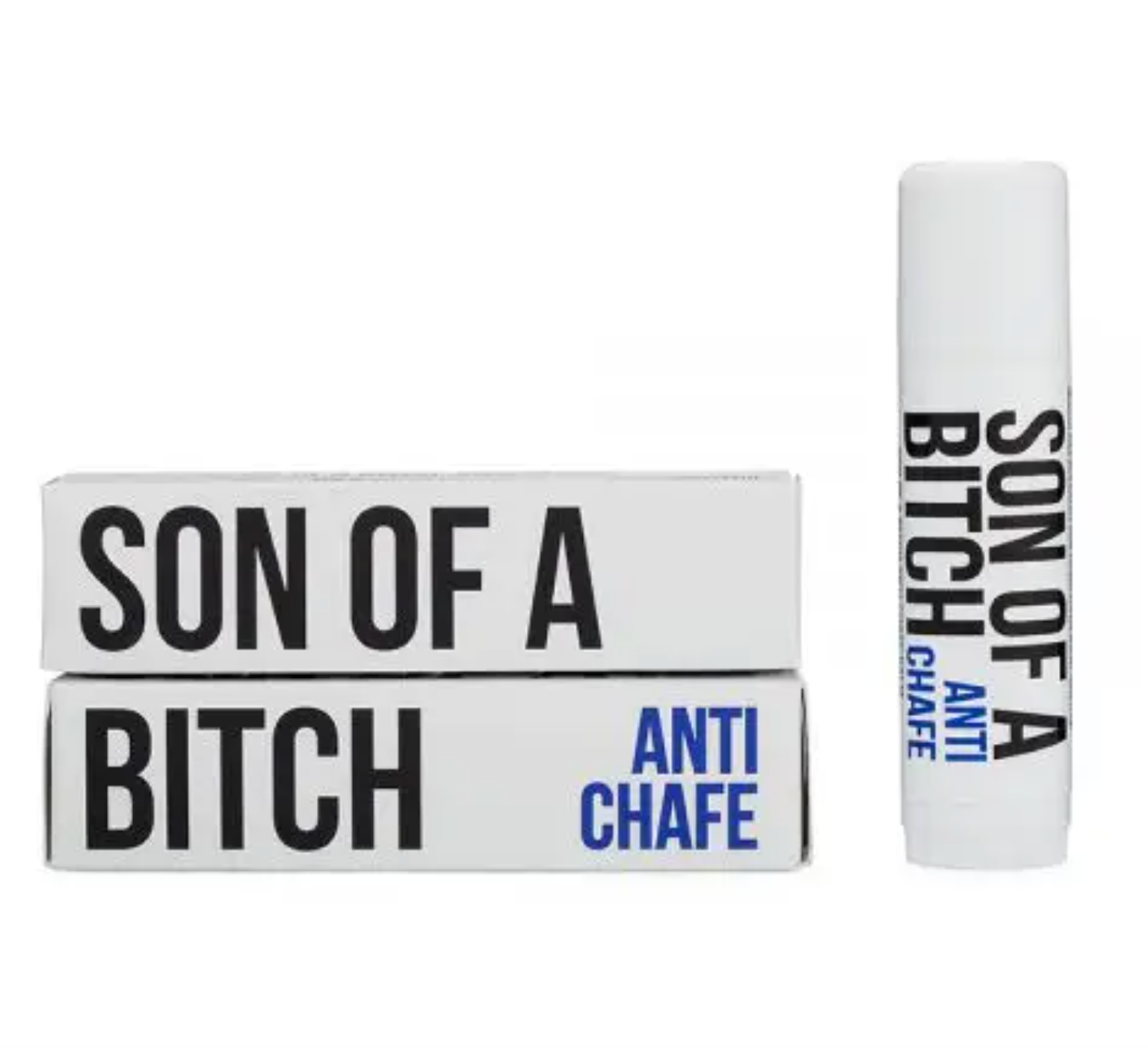 Son Of A Bitch Anti Chafe Stix Protect your skin from the irritation of chafing with SON OF A BITCH anti-chafe Stix. This powdery formula glides on to protect your skin from chafing while running, cycling, or to prevent blisters! This product is essential gear to keep in your bag so you can focus on your performance, not on the discomfort of chafing. Product is unscented, clear and will not stain fabric.