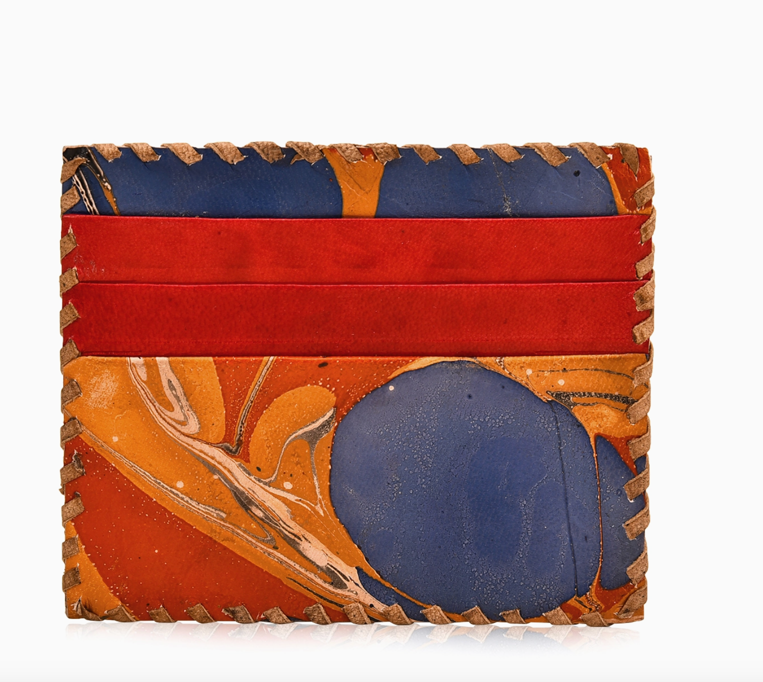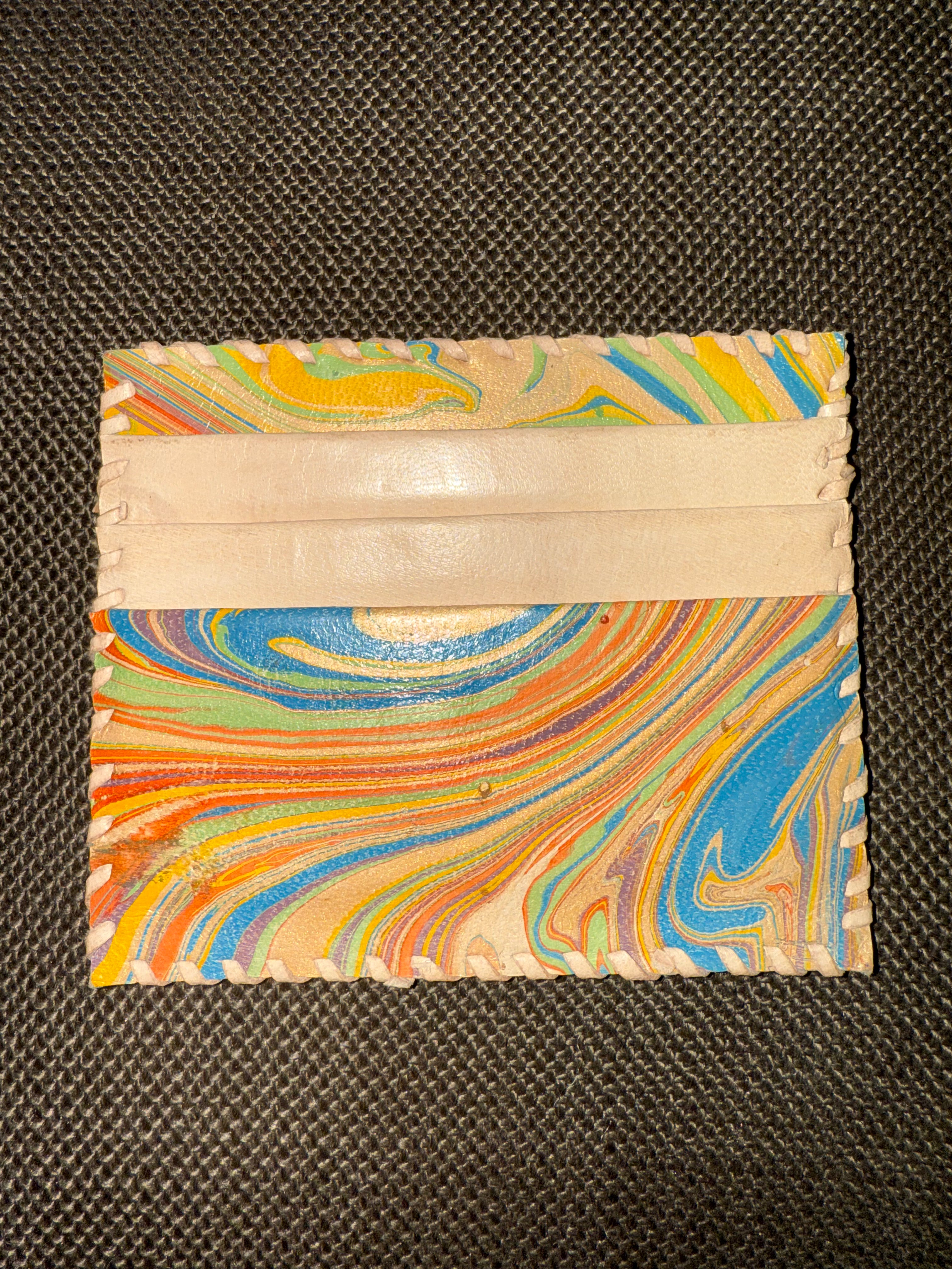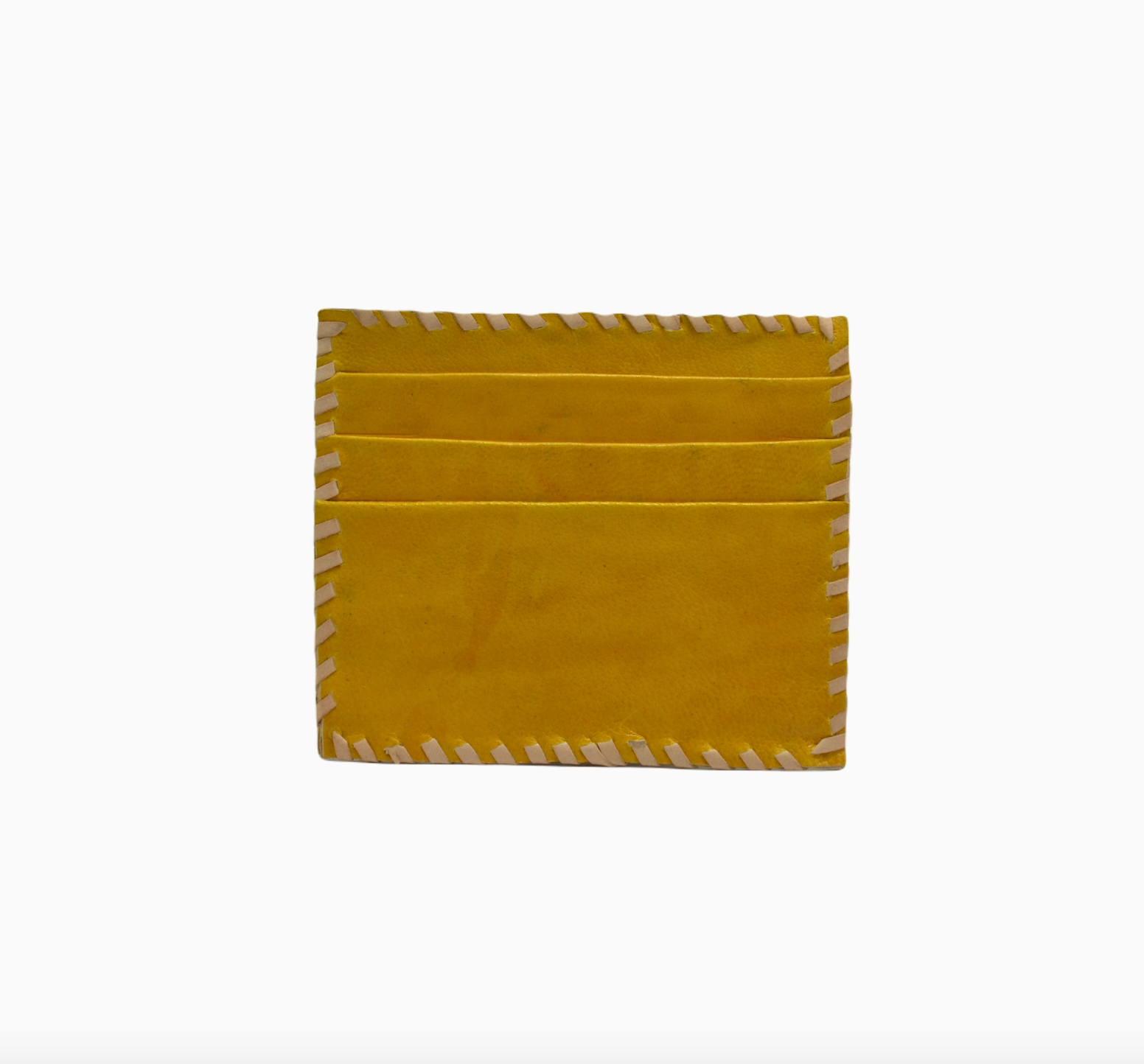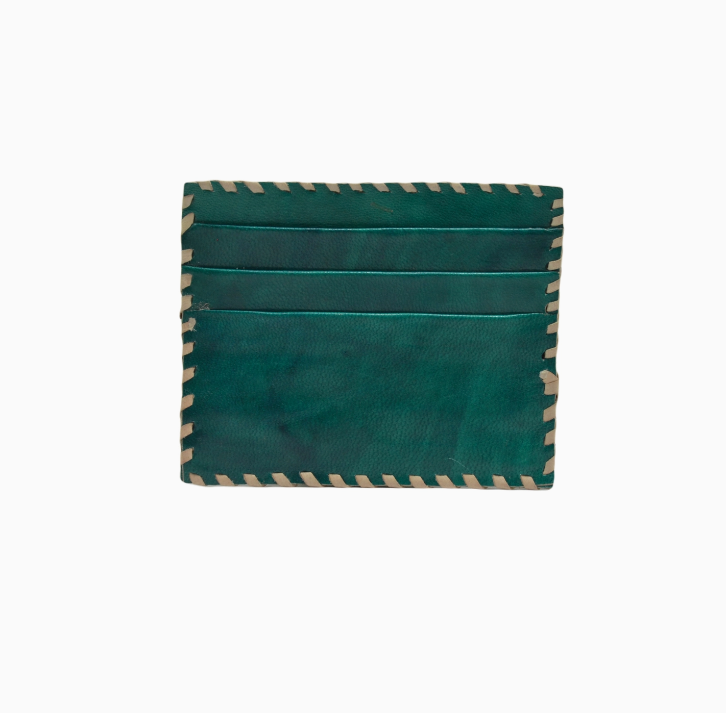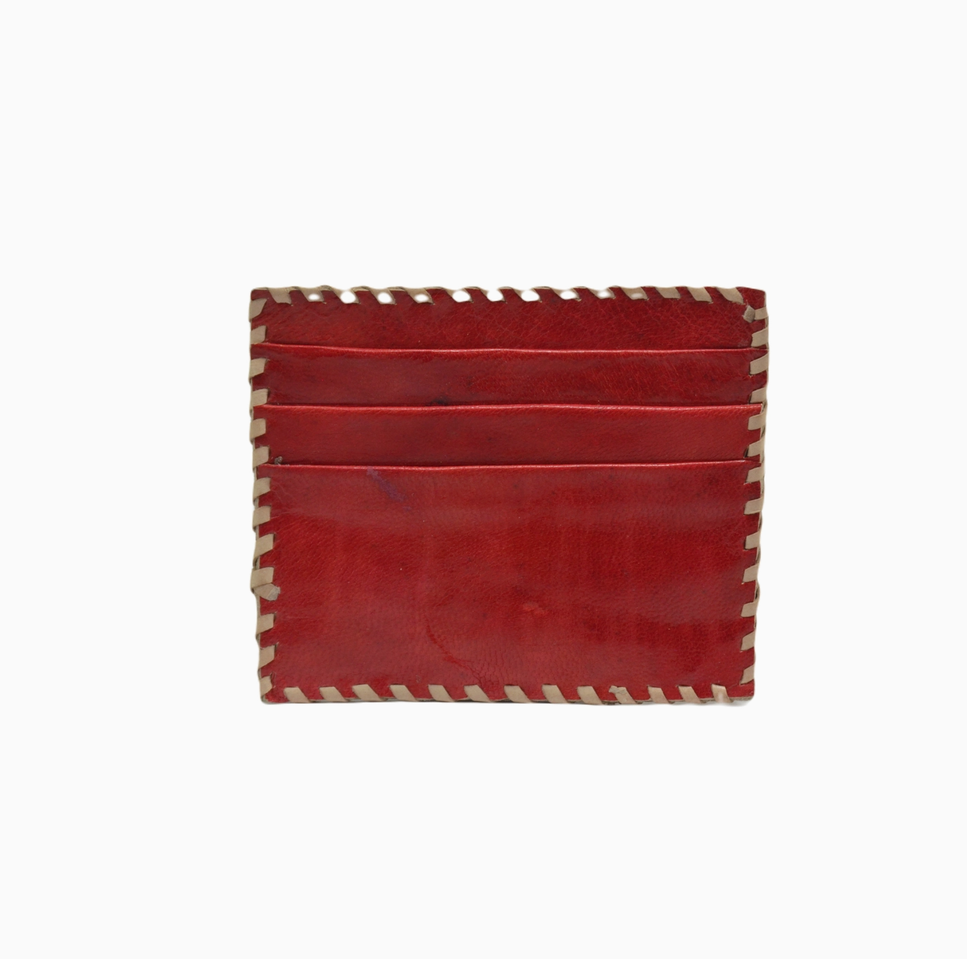 Handmade credit cardholder. Made with handdyed color leather. Handstitched using leather strips creating beautiful whipstitch detailing. Double-sided. Card Holder. 6 credit card slots. Size: 3.5"x4.25".