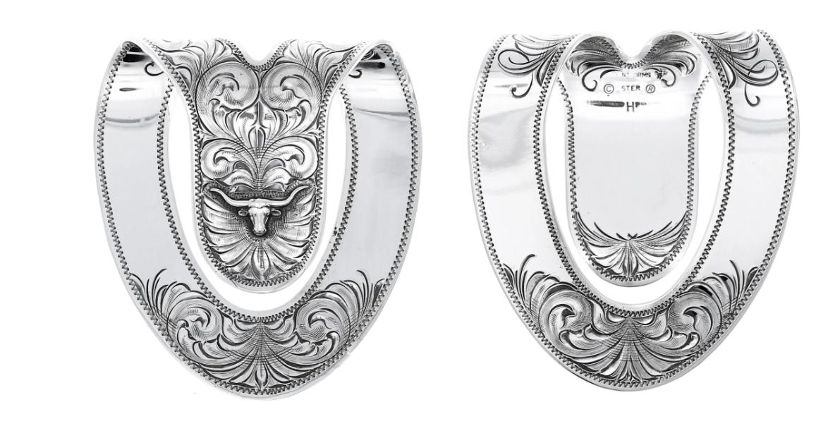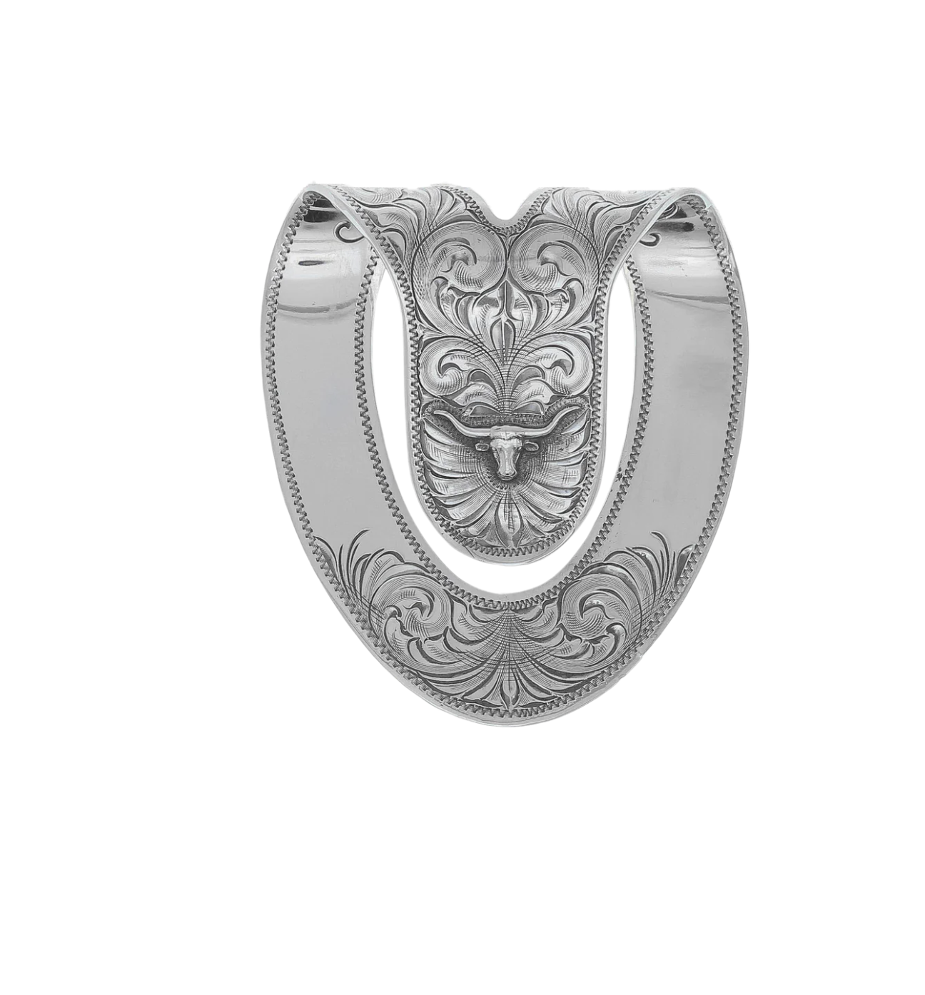 The San Saba is our smallest signature money clip. San Saba 1806 sterling silver longhorn and scroll engraving. All of our signature money clips are easily adjustable and can be re-tightened over time for varying carry needs.