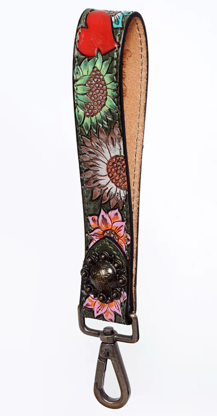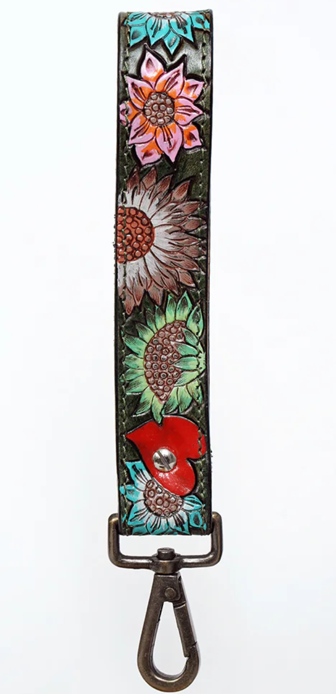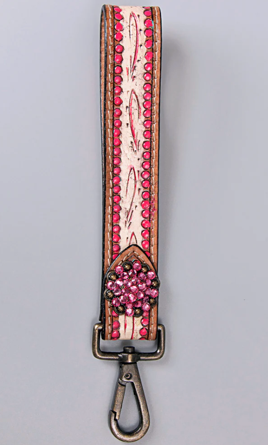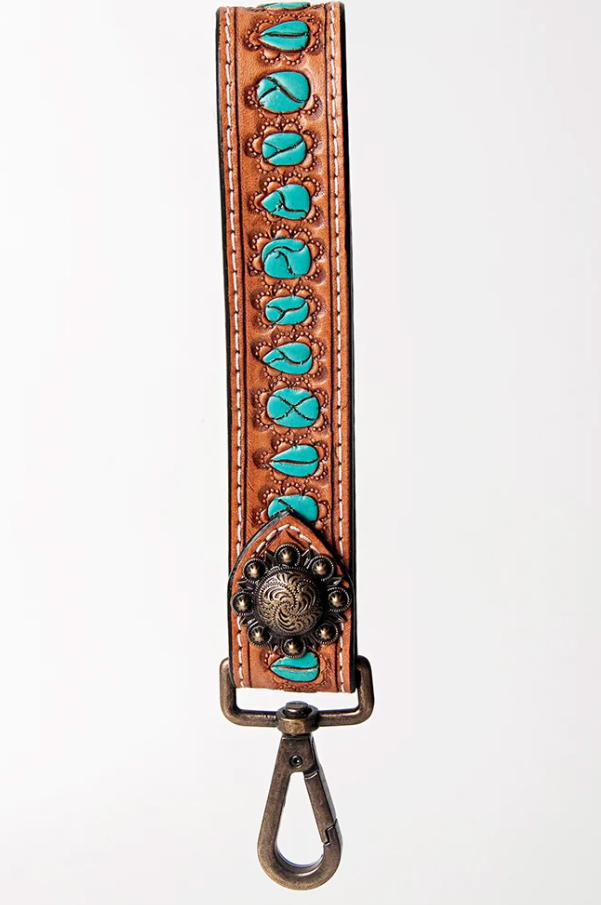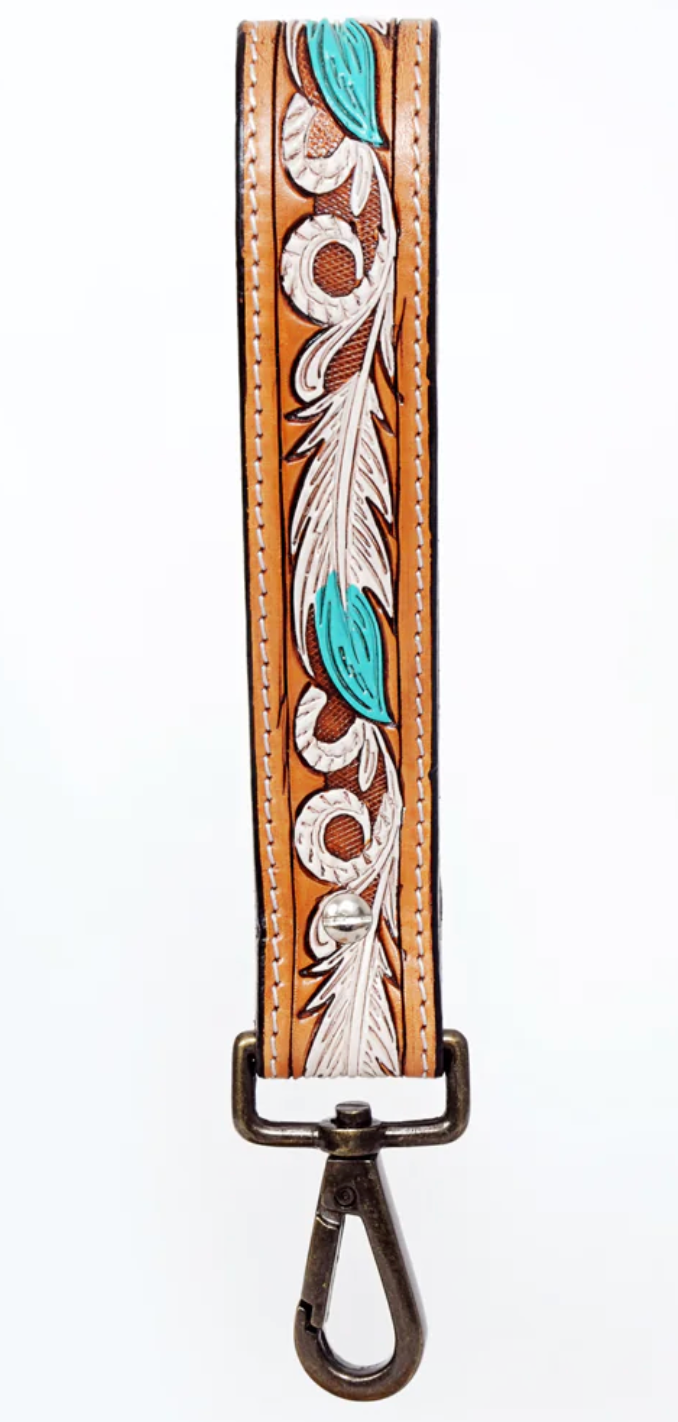 Keep your keys close and your style on point with our Tooled Leather Wristlet Keychain! This western accessory features a western design on high-quality leather, ensuring both functionality and fashion in one. Perfect for the chic cowgirl (or you know, just someone who loses their keys a lot).