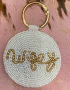 Round Beaded Wifey Key Chain | White/Gold