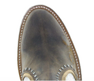 Each side features an element that is distinct from the other. Motifs that resonate with the route and that of the west. The crackled finish on the leather gives the boot its unique character . From the hand tooled cactus on the pull straps, to the embroidered scorpio, each angle tells a different story.