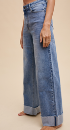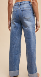90S STYLE CUFFED HEM HIGH RISE STRAIGHT FULL LENGTH JEANS - 90'S STYLE - HIGH RISE - FULL LENGTH (INSEAM: 32" (WITH CUFFED)) - REGULAR STRAIGHT LEG - RELAXED FIT - HAND RUBBED - CUFFED HEM DETAILED