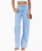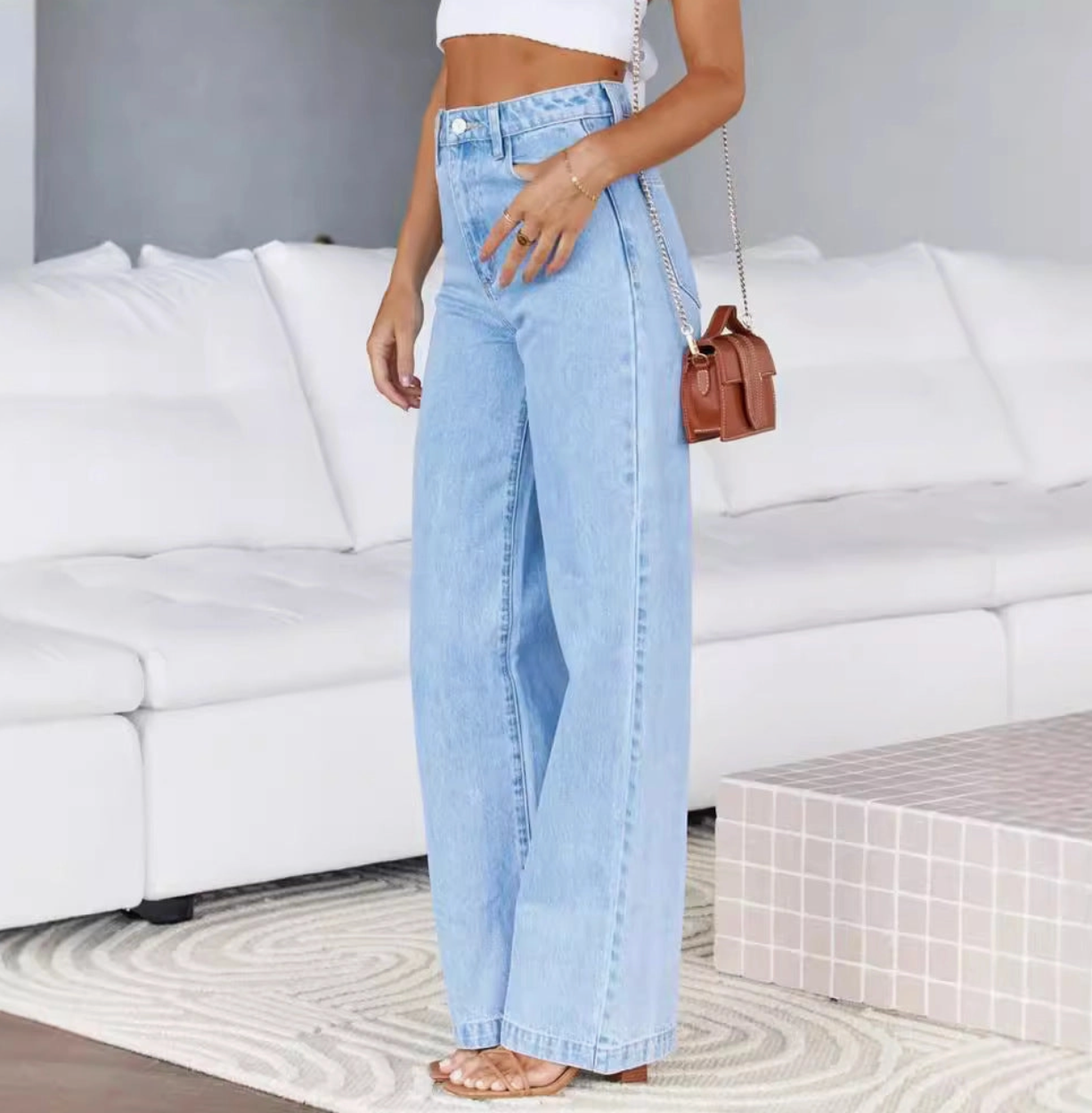 Feature: * Washed * High Waist * Zip Front and Button Closure * With Pockets * Daily Fitting * Soft Stretch Denim * Wide Leg * Casual, Loose Weigh: *
