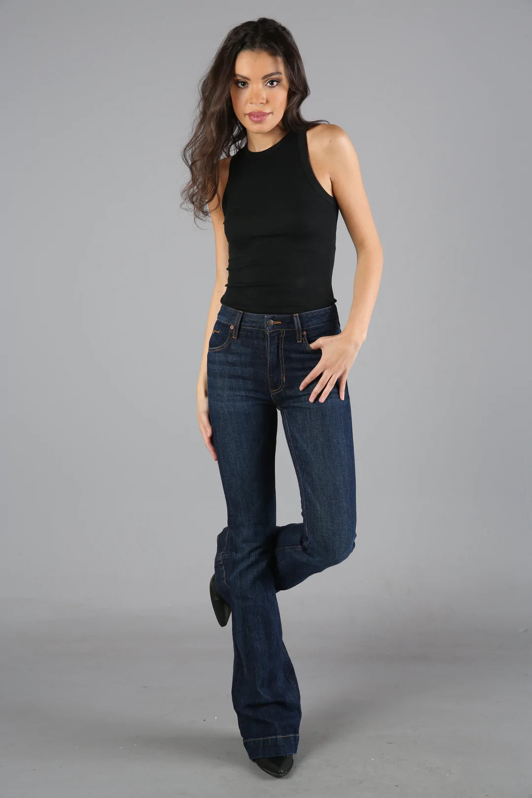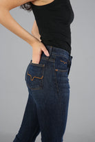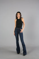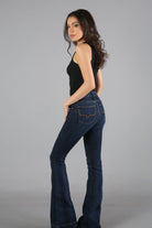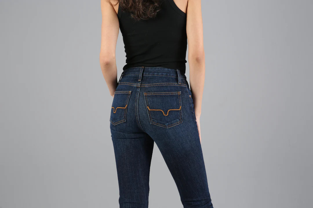 With an ultra-high rise and super wide flare leg, the Jennifer flatters all shapes and sizes. Our bestselling denim in a dark wash with hand-sanding whisker details, the Jennifer makes a statement in the saddle or the city streets.