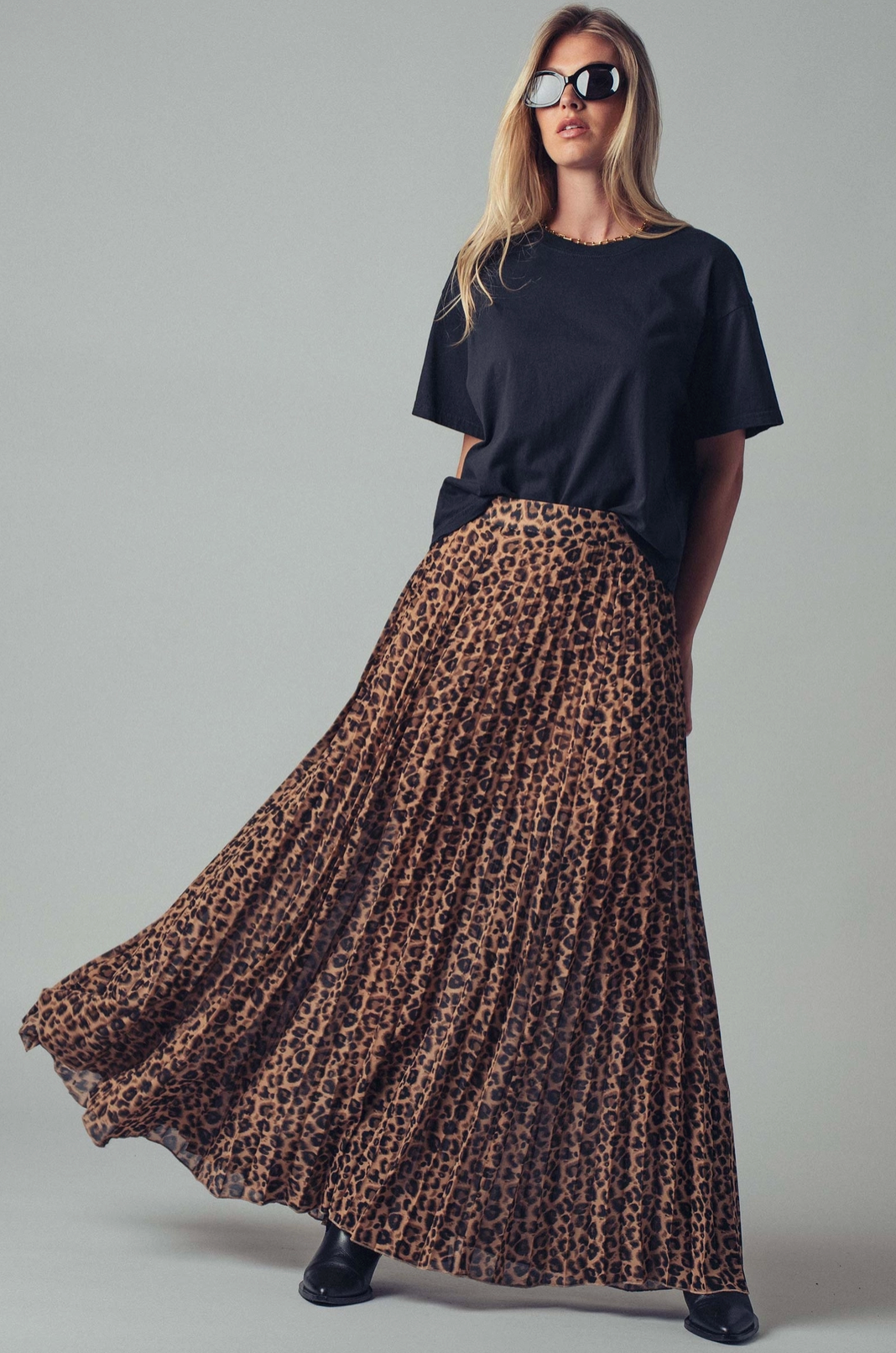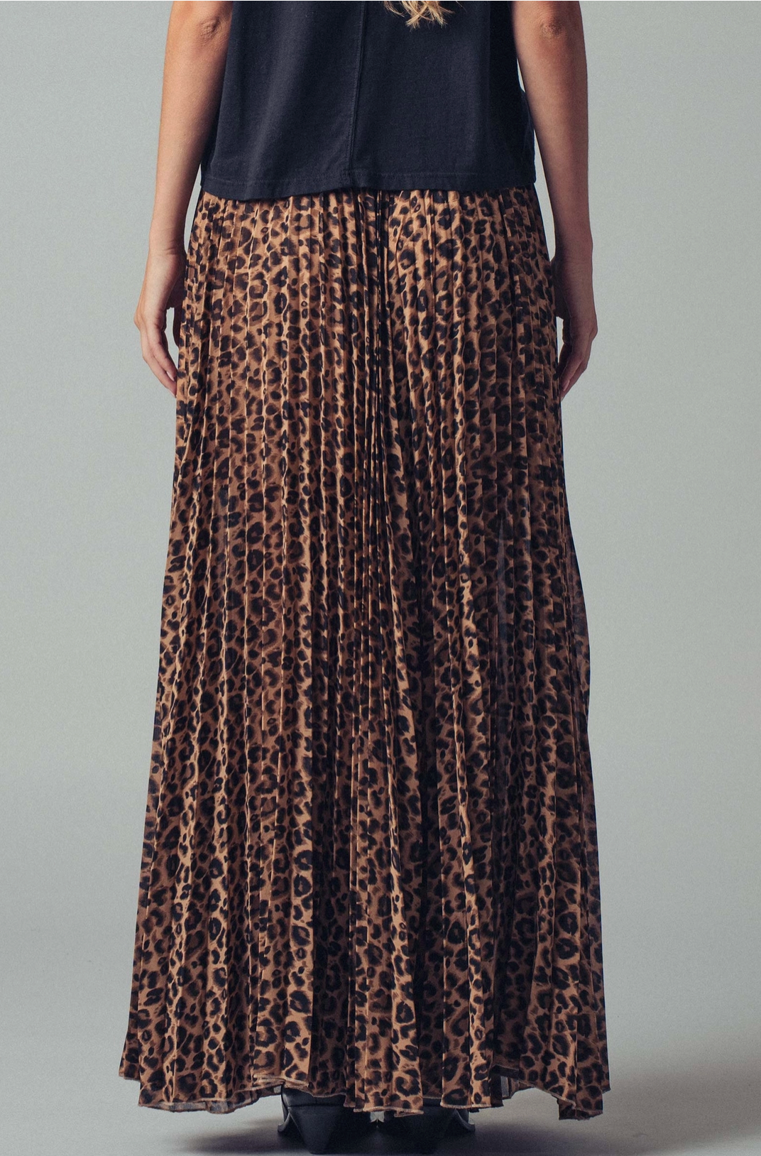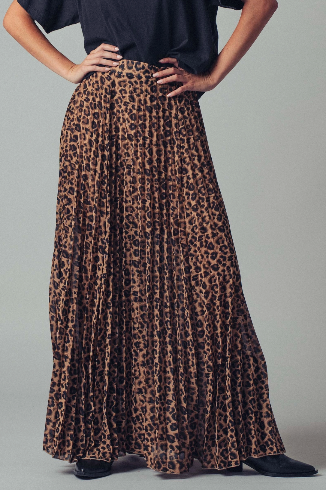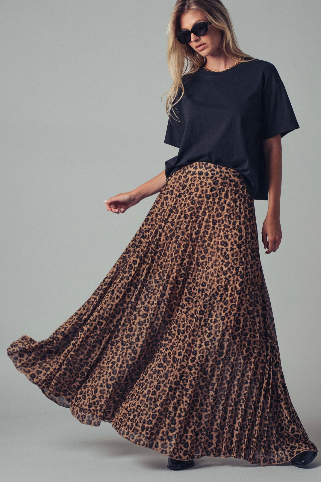 Sophisticated Leopard Print Pleated Flowy A Line Midi Skirt
