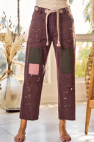 WASHED VINTAGE PAINTED ROPE STRING POCKET JEANS