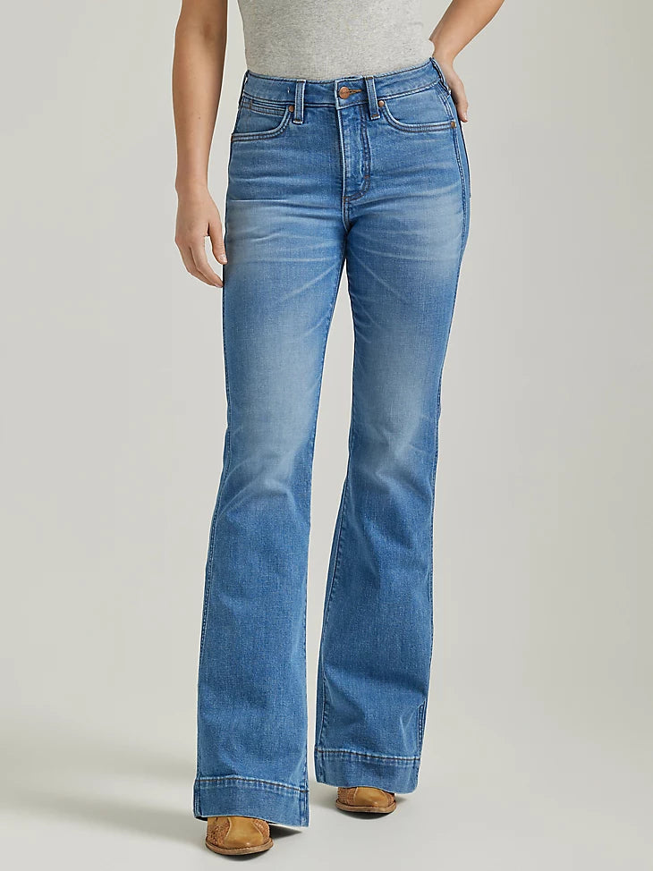 Your favorite Retro® jeans just got even better. Our Retro® Premium Trouser Jean delivers unmatched style, fit, and quality. An ultra-flattering high rise and classic five-pocket styling are enhanced with denim specifically crafted to have superior stretch recovery, meaning they will hold their shape throughout the day without bagging or sagging. A slim fit through the seat and thighs opens to a wide trouser leg at the knee, a silhouette that looks as great in the saddle as it does in the city streets. And to ensure their authenticity, each pair is finished with our seven icons: flat copper rivets, a rope logo shank, a leather back pocket patch, 'W' pocket stitching, seven belt loops with reinforced tacking, a rodeo watch pocket, and a back yoke over body.