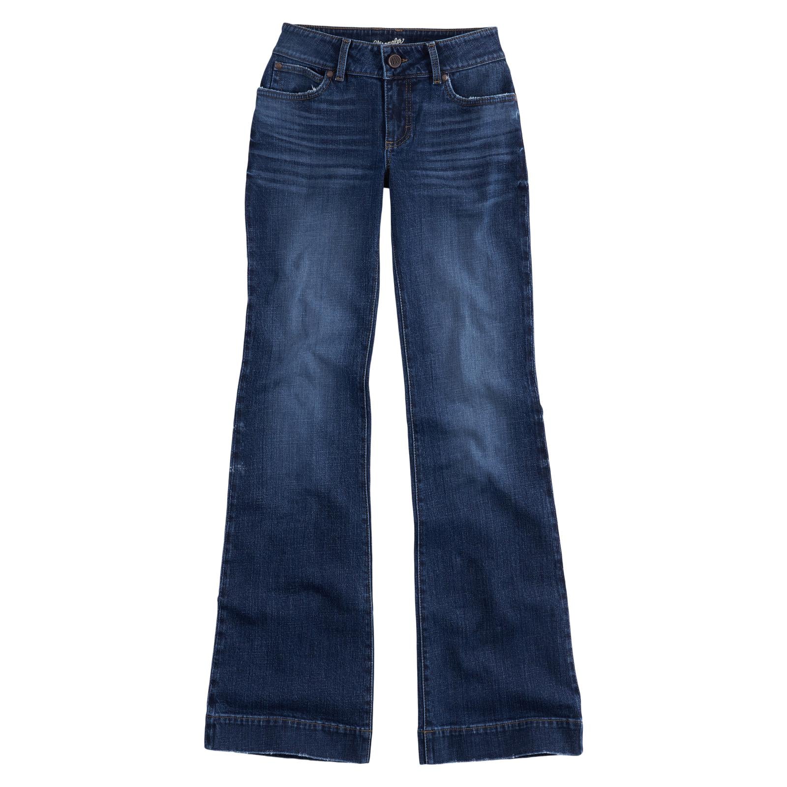 Like all Wrangler Retro® jeans, our Mae wide leg is marked by its Western authenticity, making it a go-to style for cowgirls everywhere. With its contour waist and mid rise, these women's trouser jeans are made to fit comfortably while they flatter. Want the look of a flare with added comfort? Our women's wide leg jeans make it happen. With more room at the knee and a gradual opening down the leg, the Mae wide leg gives you the room you need to stay active and in style. Wrangler® jeans for women are designed with a Western state of mind, so you can be confident that they'll keep up with you no matter what the day brings
