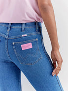 Wrangler X Barbie: Westward High Rise Bootcut Jean in Wrangler Blue