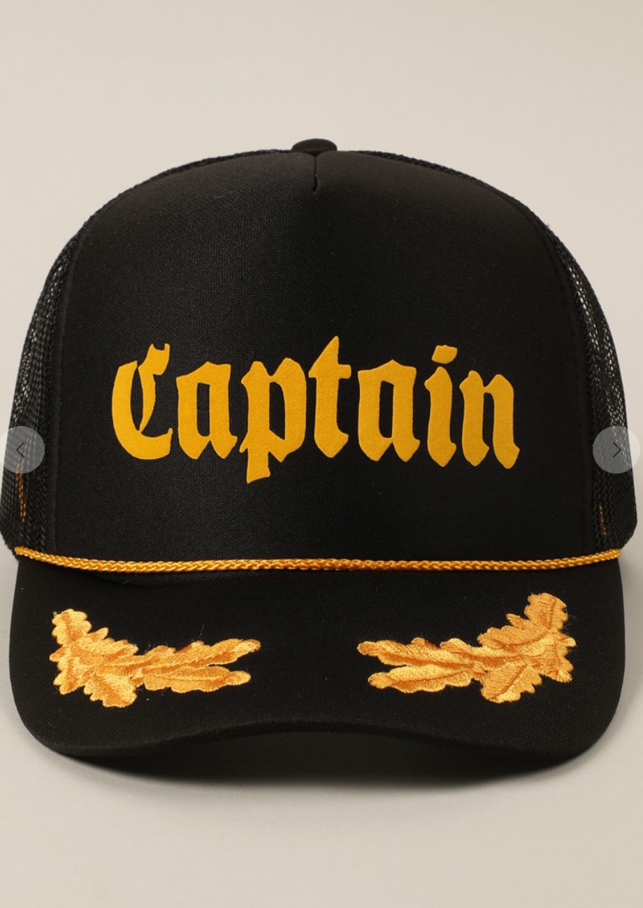 CAPTAIN Lettering Logo Foam Mesh Back Trucker Hat - "CAPTAIN" Lettering Design - 5 Panel Trucker Hat - Breathable Mesh Back Hat - 100% Polyester - Customized on the OTTO Body Cap ** One size fits most: Adjustable snapback closure **
